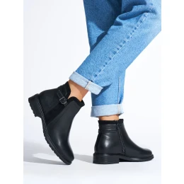 Krásné kotníčkové boty černé dámské na plochém podpatku