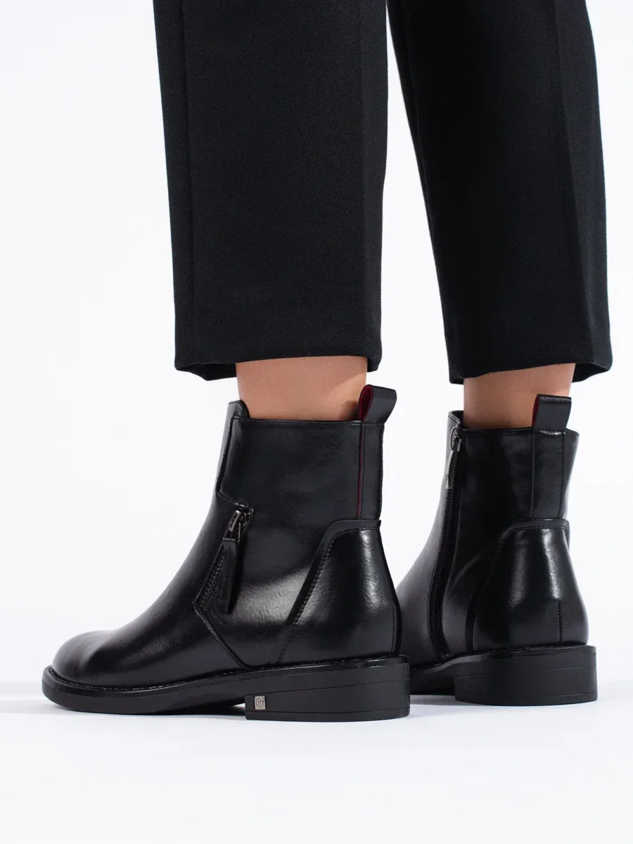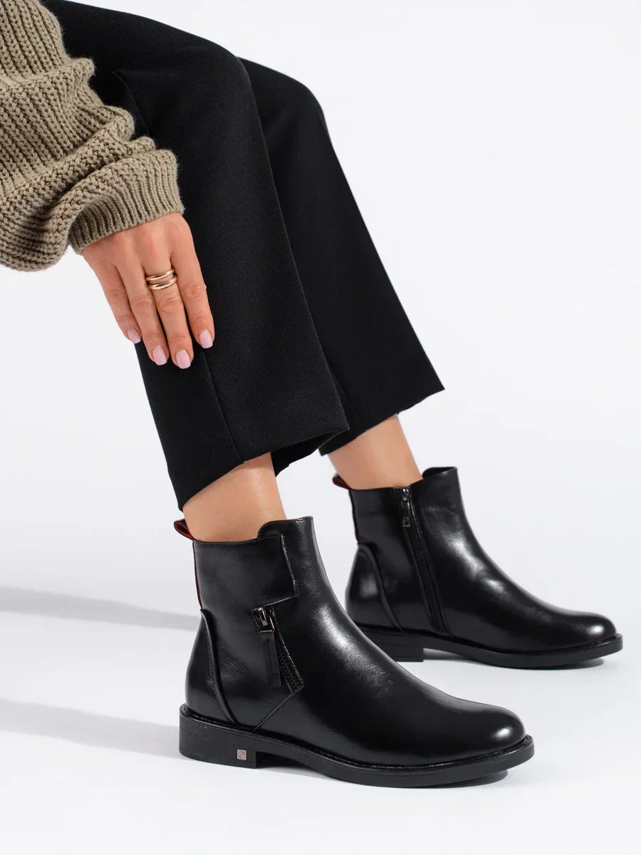 Krásné kotníčkové boty černé dámské na plochém podpatku