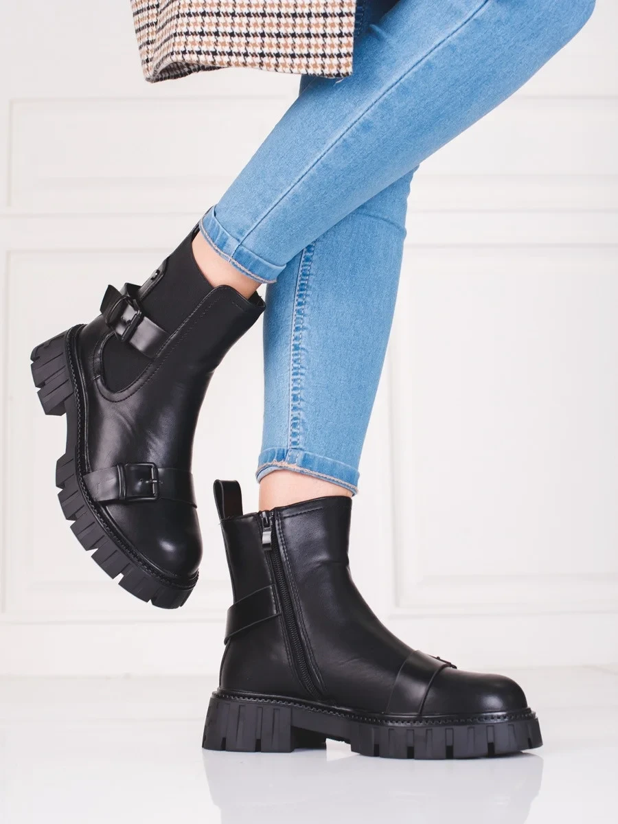Krásné kotníčkové boty dámské černé na plochém podpatku