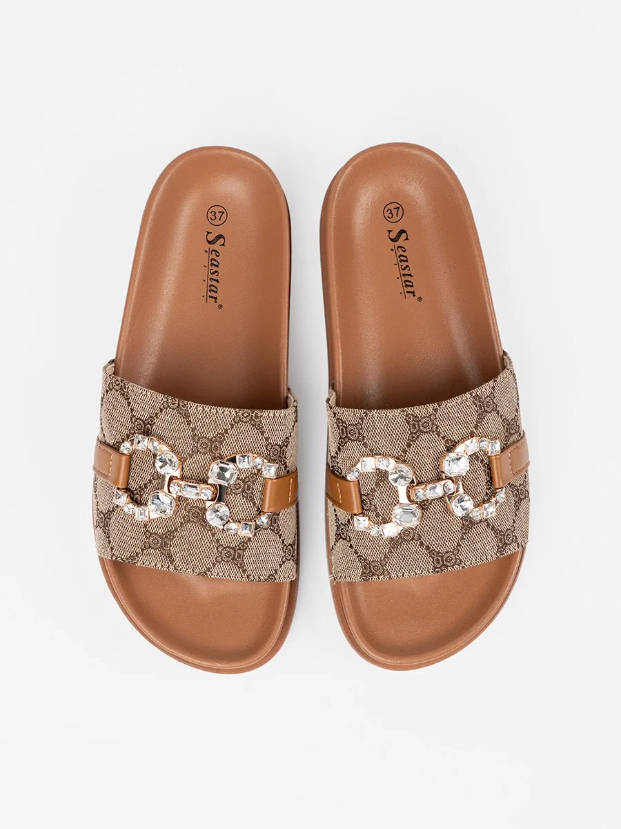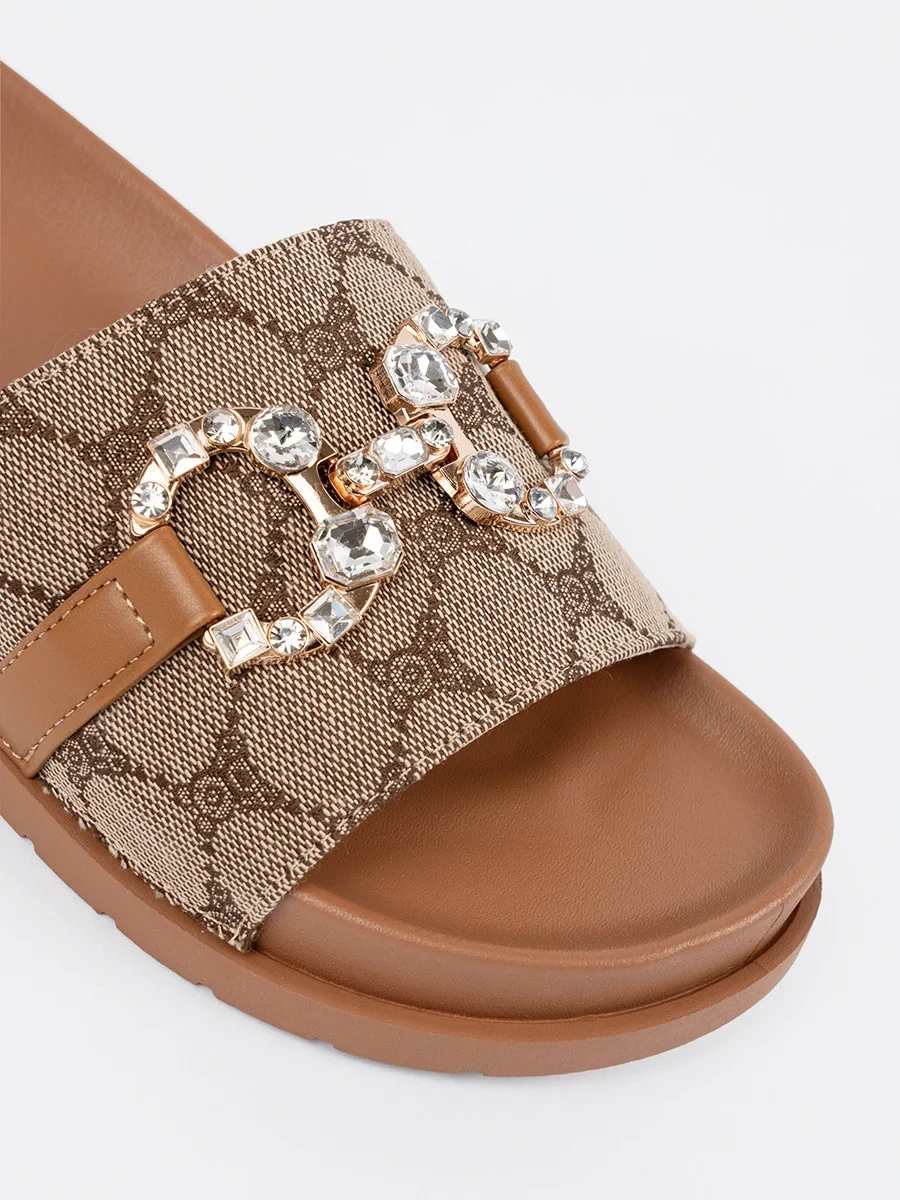 Krásné nazouváky dámské hnědé na plochém podpatku