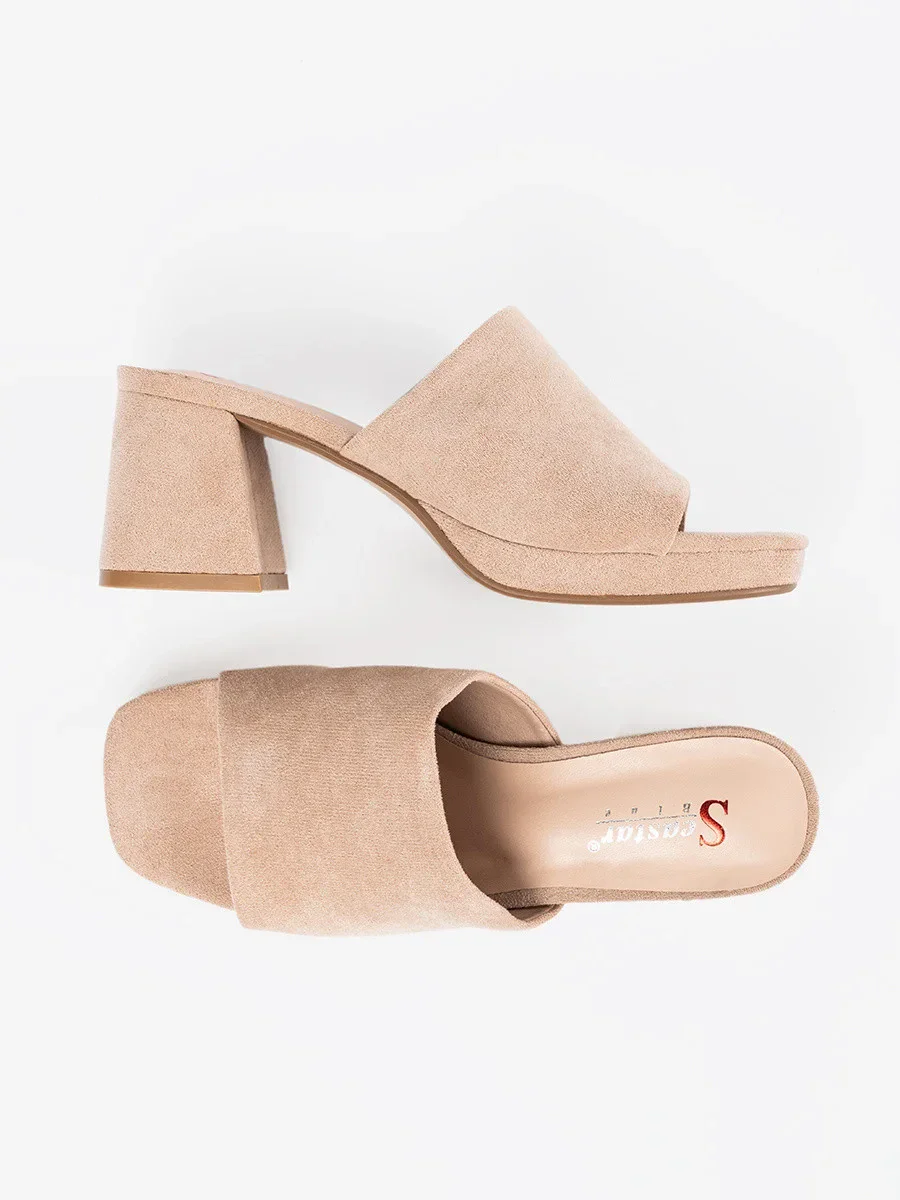 Krásné nazouváky hnědé dámské na širokém podpatku