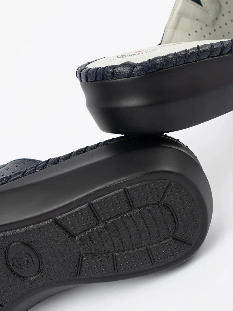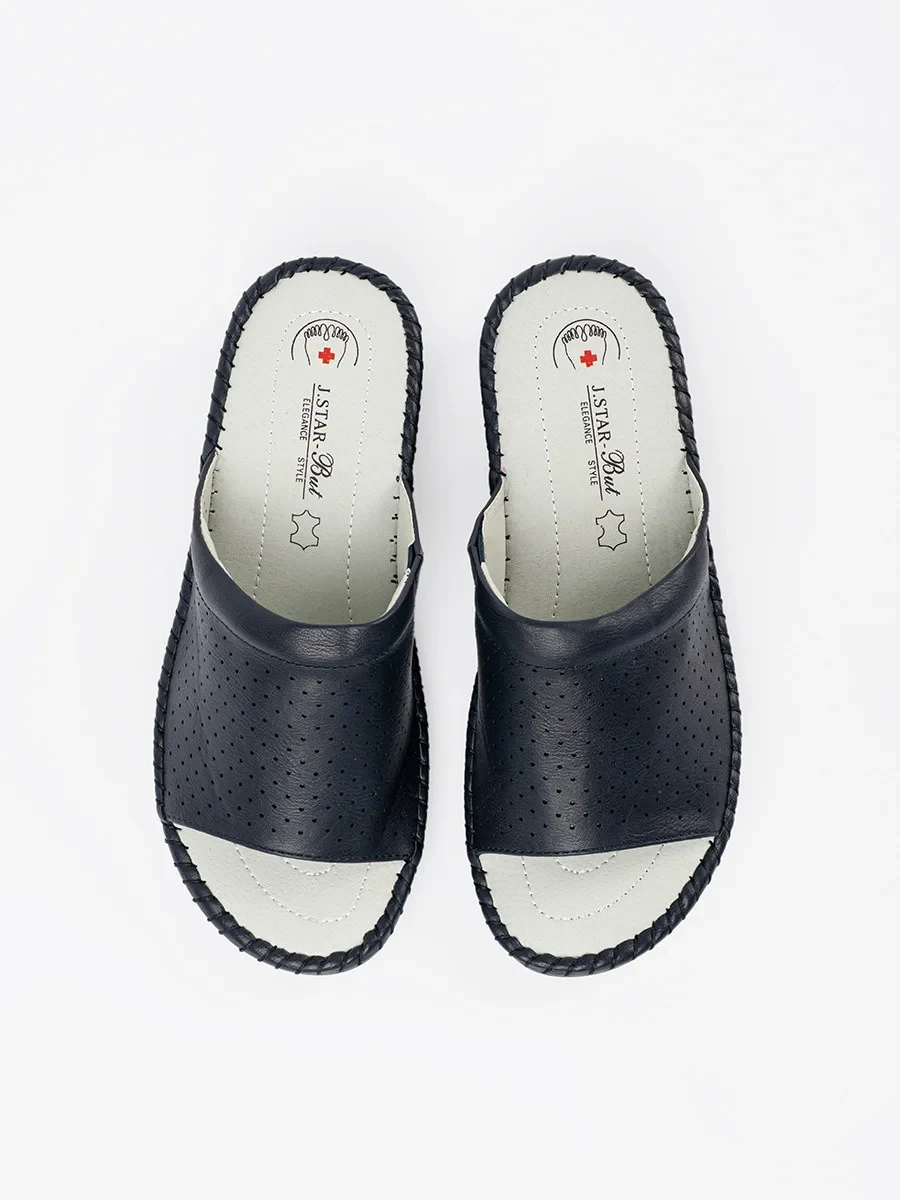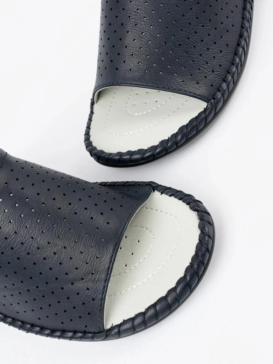 Krásné tmavě modré nazouváky dámské na plochém podpatku