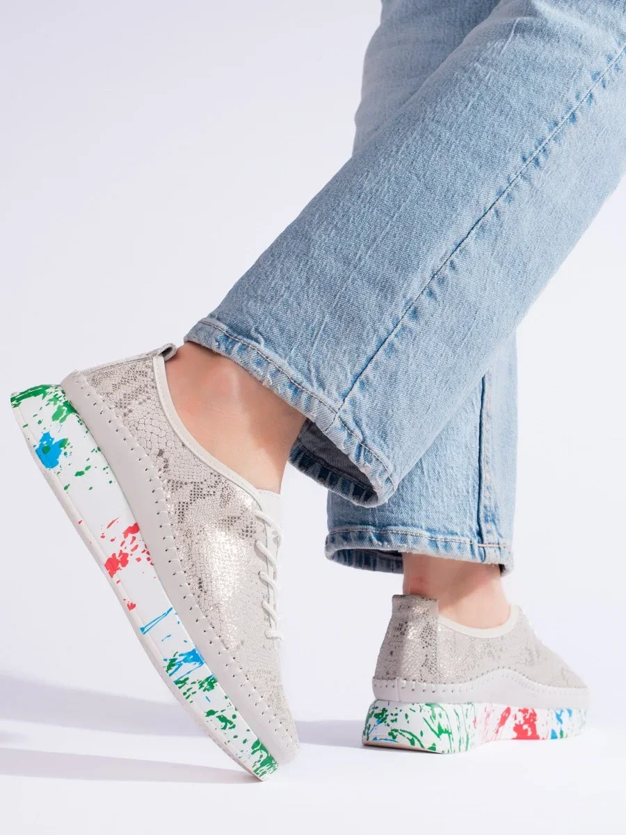Krásné zlaté polobotky dámské bez podpatku