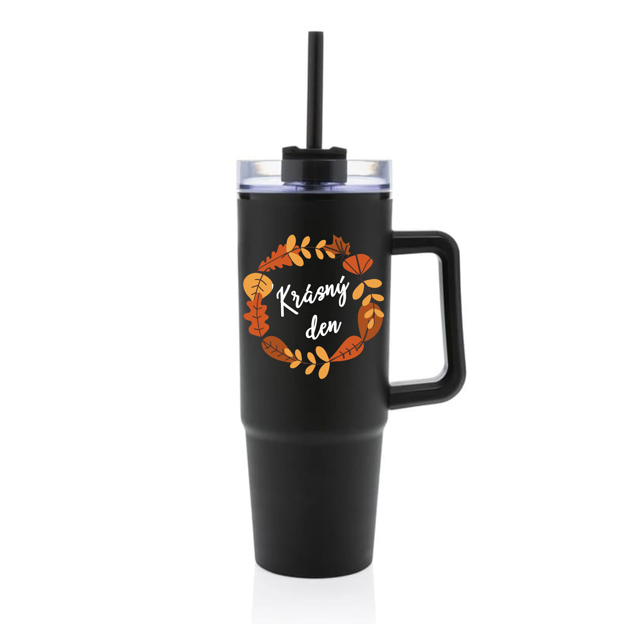 KRÁSNÝ DEN (PODZIM) - černý cestovní termohrnek s průhledným víčkem 900 ml
