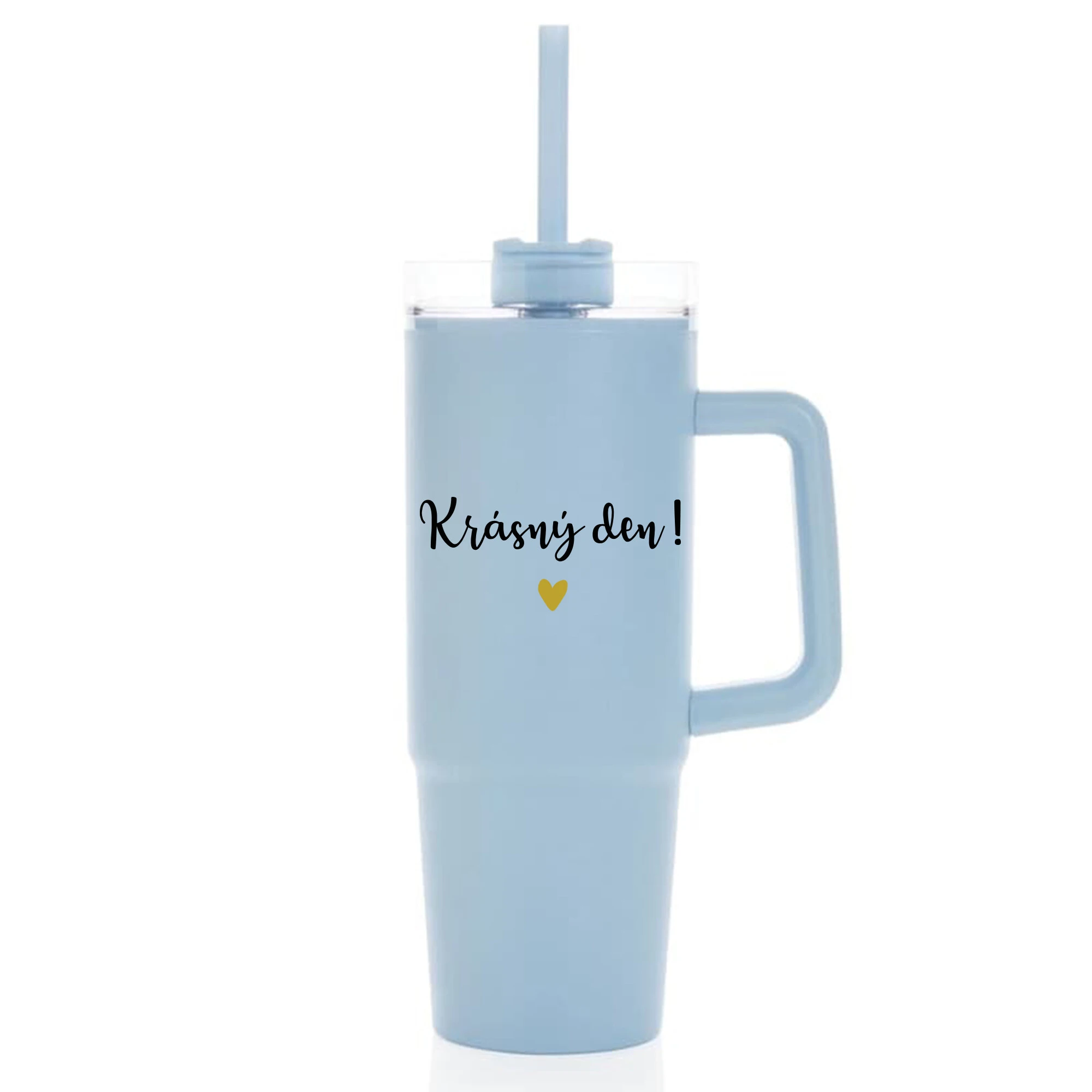 KRÁSNÝ DEN - světle modrý cestovní termohrnek s průhledným víčkem 900 ml