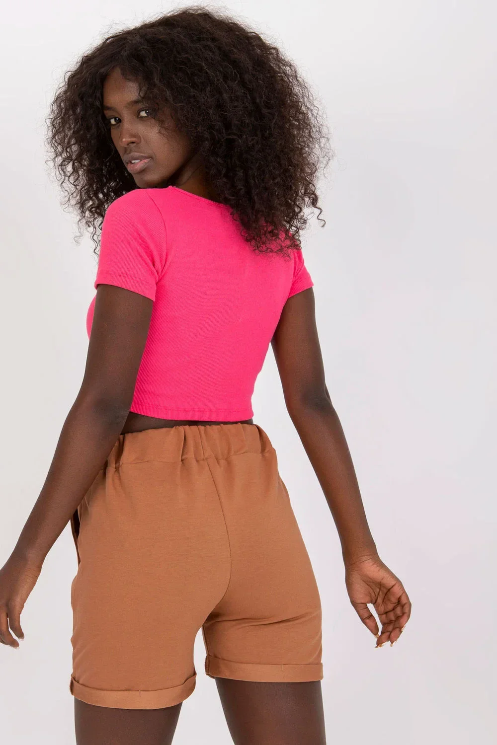Bavlněné šortky s vysokým pasem, zavazování v pase, boční kapsy.
