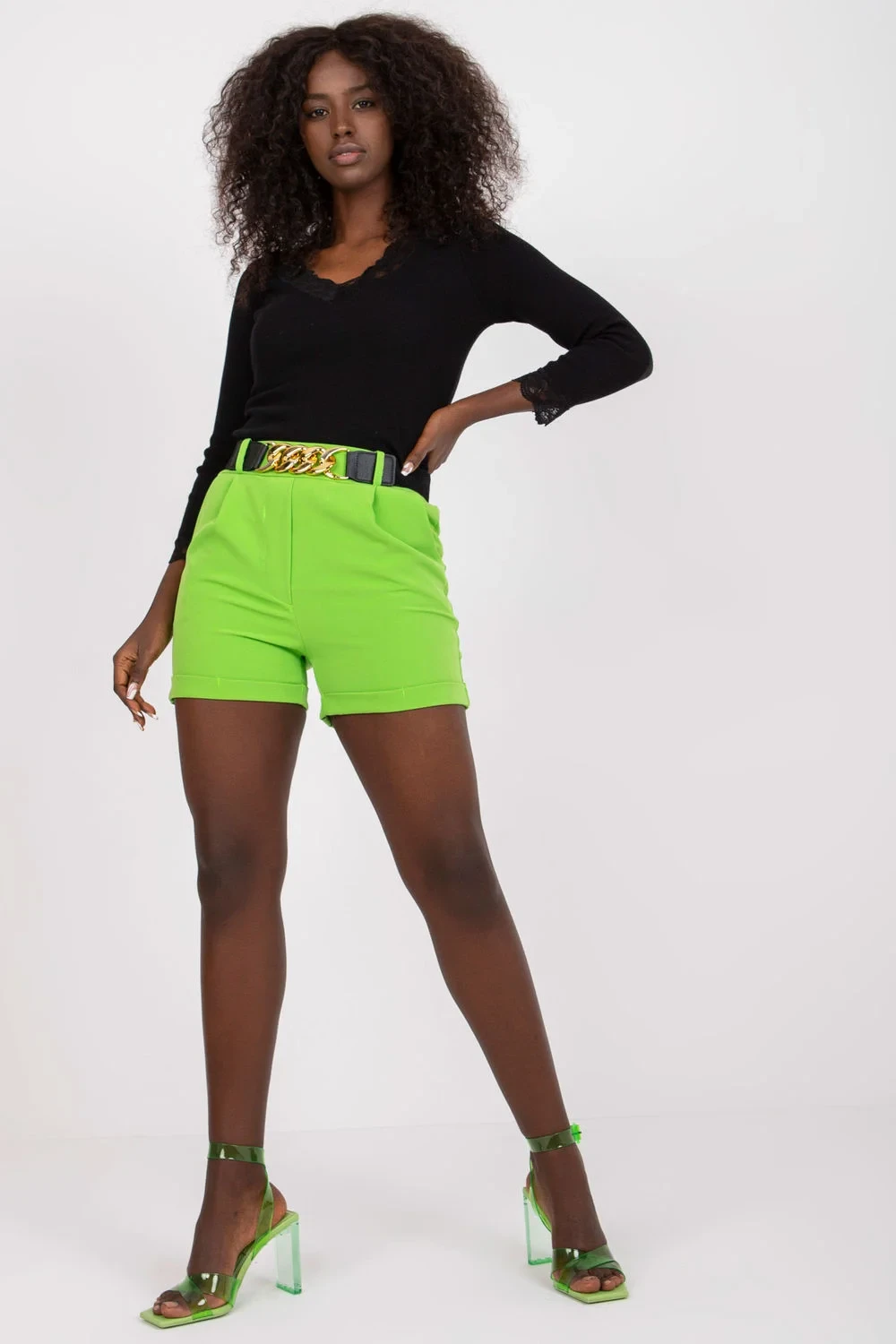 Dámské šortky s elastickým pasem, kapsy na zip. Šortky s ozdobným páskem. Skvěle se hodí pro mnoho stylů.