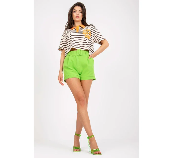 Elegantní dámské šortky se zapínáním na zip a knoflík. Kapsy na bocích. Stejnobarevný pásek. Skvěle se hodí pro mnoho příležitostí.