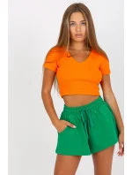 Dámské krátké šortky se širokými nohavicemi. Pásek s gumou a vázáním, kapsy na bocích.