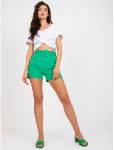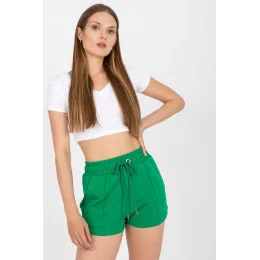 Dámské krátké šortky se širokými nohavicemi. Pásek s gumou a vázáním, kapsy na bocích.