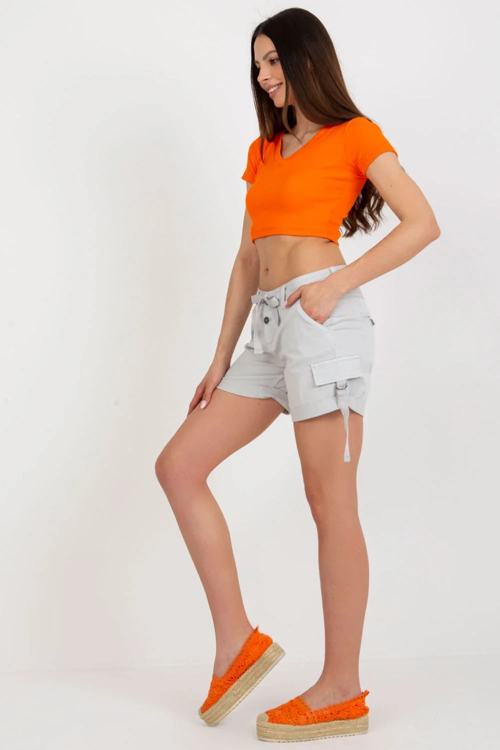 Dámské šortky na knoflíky se zavazováním v pase. Kapsy na bocích.