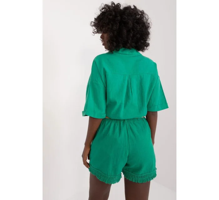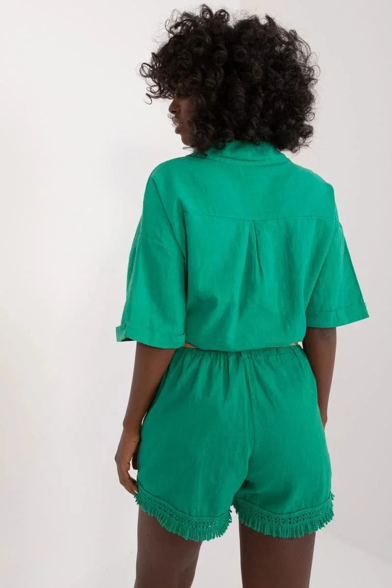Tyto látkové šortky jsou ideální volbou pro každodenní letní stylizaci a dodají každému outfitu ležérní šarm. Jsou vyrobeny z lehkého lnu s příměsí bavlny a nabízejí prodyšnost a pohodlí i v těch nejteplejších dnech. Jejich široké nohavice s třásněmi dodávají charakter a lehkost a celému outfitu originální vzhled. Stylizované v ležérním duchu se tyto šortky hodí k mnoha různým outfitům. Díky jednobarevnému materiálu jsou univerzální a lze je snadno kombinovat s dalšími kousky ve vašem šatníku. Jejich vysoký střih navíc zdůrazňuje pas a dodává jim ženský nádech. Šortky mají v pase přezku, která vám umožní přizpůsobit si je své siluetě. Tyto šortky, které se skvěle hodí na každodenní procházky, setkání s přáteli nebo letní výlety, budou dokonalým doplňkem vašeho letního šatníku a poskytnou vám styl a pohodlí po celý den.