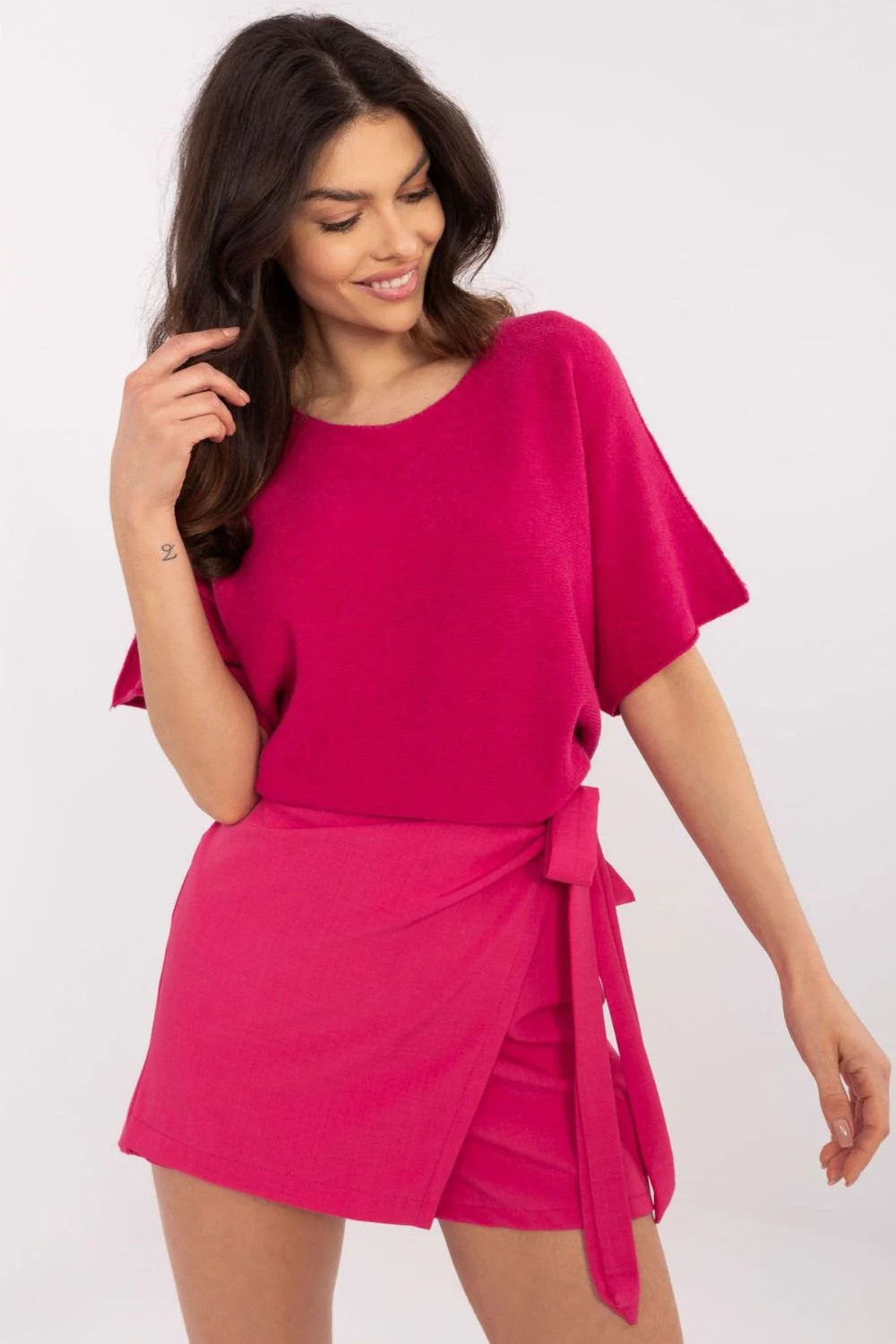 Sukně s kalhotami elegantního střihu jsou stylovým a pohodlným řešením pro mnoho příležitostí. Vyrobené z vysoké kvality směsi viskózy a elastanu zajistí pohodlí nošení a skvělé přizpůsobení postavě. Jsou charakterizovány širokými nohavicemi a vysokým pasem, který krásně zdůrazňuje pas. Přední část je zdobena decentním záhybem, který jim dodává sukněný efekt, a další šněrování v pase přidává celku ženský šarm. Hladká látka zaručuje, že se skvěle hodí jak na každodenní nošení, do práce, tak i na elegantní události nebo večírky.