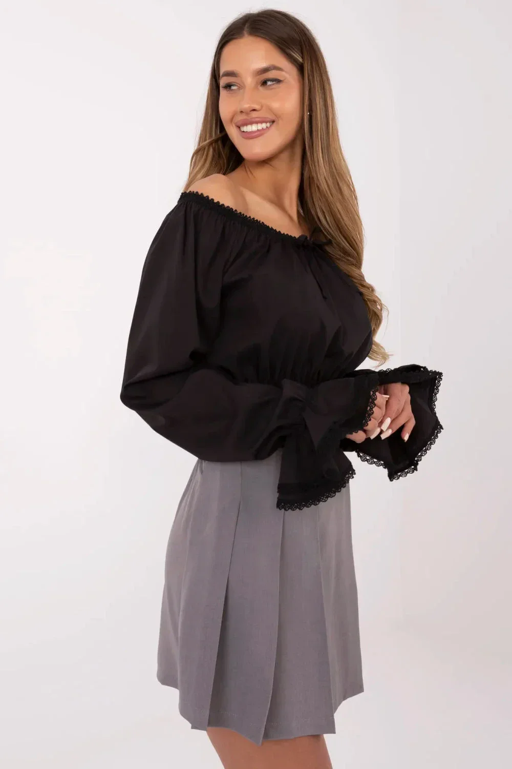 Elegantní sukně-šortky jsou stylovým a pohodlným řešením na každý den, do práce i na speciální příležitosti. Vyrobené z vysoce kvalitní směsi polyesteru a elastanu poskytují pohodlí nošení a jemné přizpůsobení postavě. Model se vyznačuje plisovanou vložkou vpředu, která mu dodává elegantní charakter a vytváří efekt sukně při zachování funkčnosti šortek. Vysoký pas s vsazenou gumou zdůrazňuje pas a zajišťuje ideální přizpůsobení. Široké nohavice přidávají lehkost a eleganci, dělají sukně-šortky skvěle sladitelné jak s elegantními halenkami, tak s casual topy. To je skvělá volba pro ženy, které si cení pohodlí ve stylovém provedení.