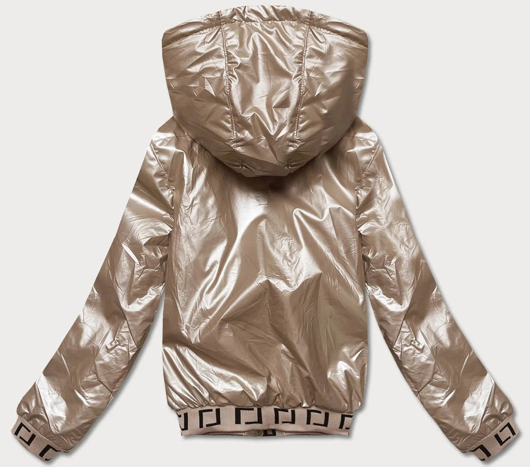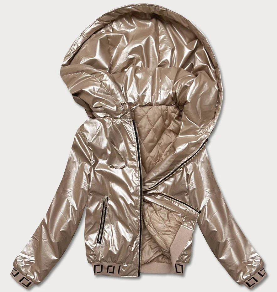 Krátká béžová dámská bunda s kapucí (B8077-101)