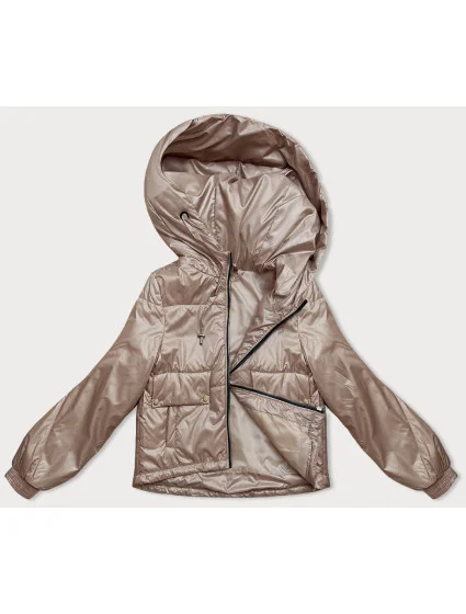 Krátká béžová dámská bunda s kapucí model 18910663 - S'WEST