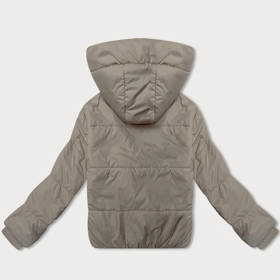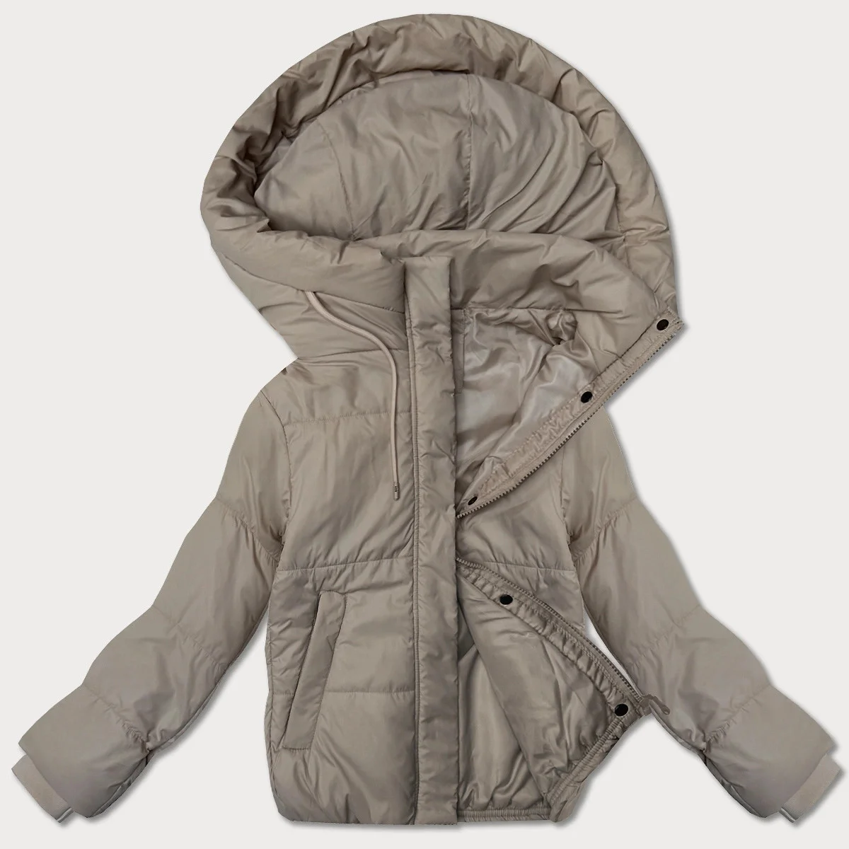 Krátká béžová dámská bunda s kapucí model 20991162 - J.STYLE