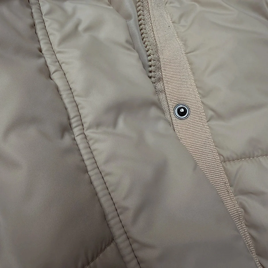 Bunda má volný střih, je lehce zateplená vrstvou syntetické péřové výplně, má dvě kapsy se zapínáním na zip a zapíná se zipem a panelem s patentkami. Model má kapuci, kterou není možné odepnout. Rukávy jsou olemované skrytými stahovacími lemy. Na spodním okraji modelu je všitá guma. Bunda má délku do pasu.