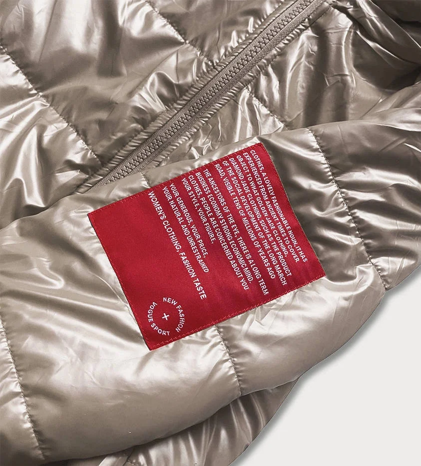 Přidání recenze k Krátká béžová dámská bunda s ozdobným lemováním (B8030-12)