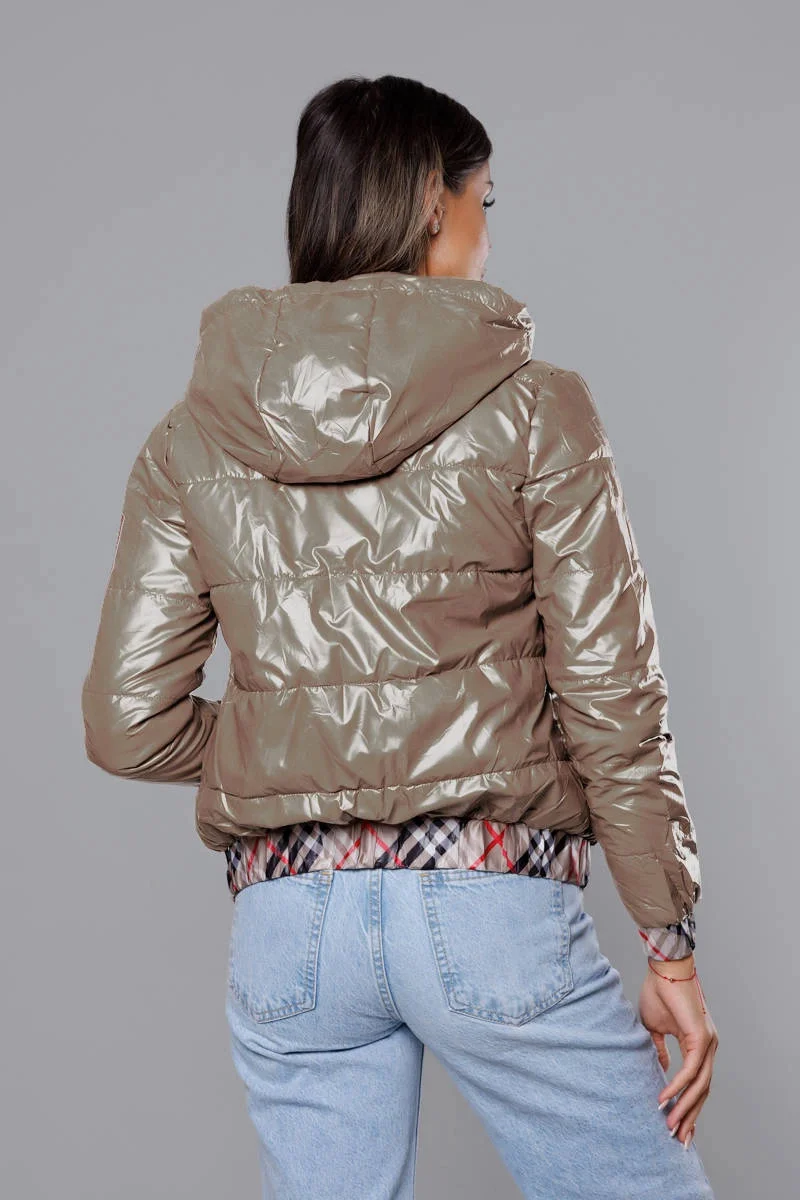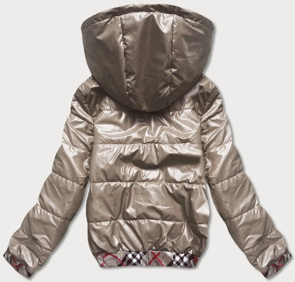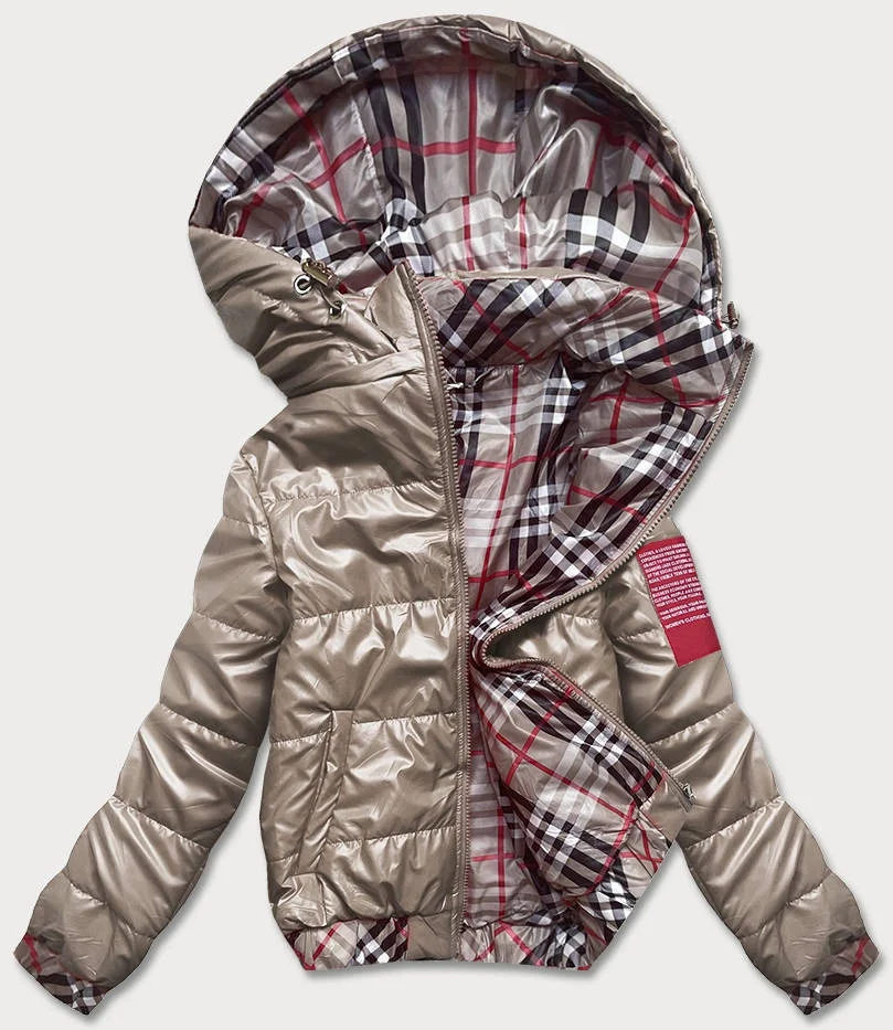 Krátká béžová dámská bunda s ozdobným lemováním (B8030-12)