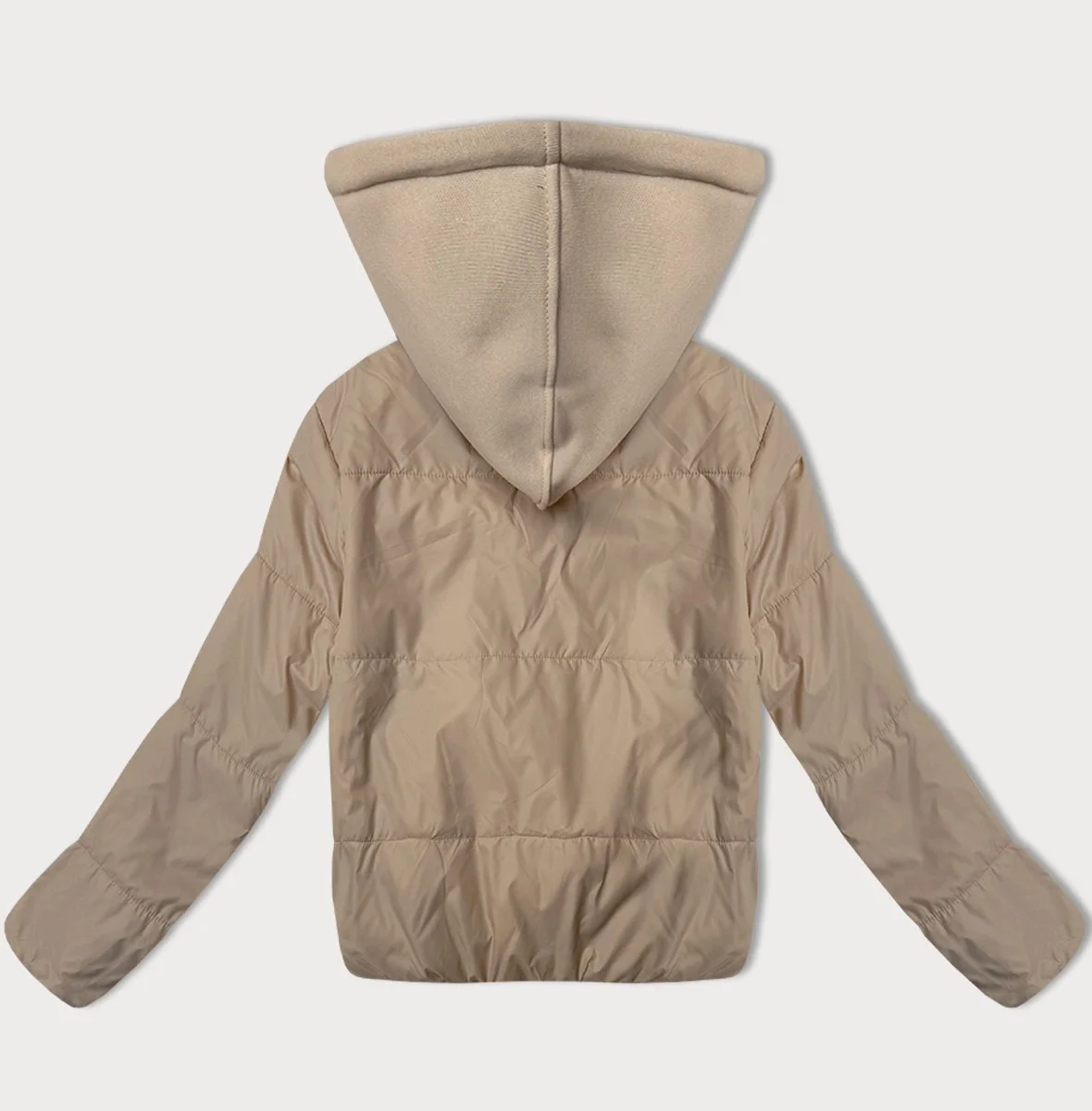 Přidání recenze k Krátká béžová dámská bunda s teplákovou kapucí J Style (16M9236-62)