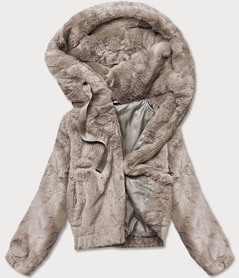 Krátká béžová dámská kožešinová bunda model 17552858 - S'WEST