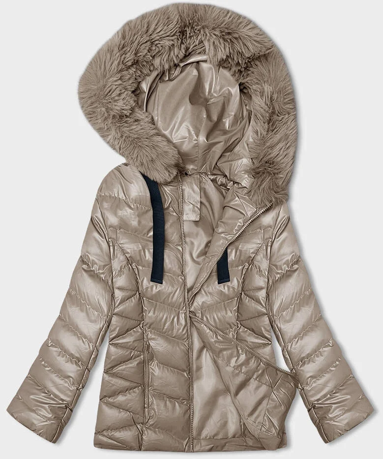 Krátká béžová zimní bunda s kapucí model 21246232 - J.STYLE