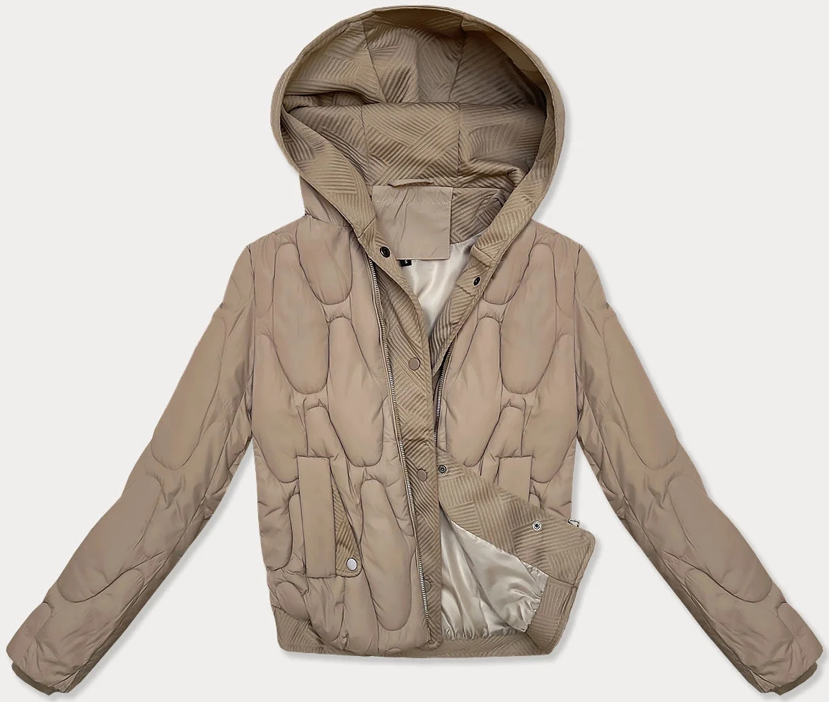 Krátká béžová zimní bunda s ozdobnou kapucí model 21248205 - S'WEST
