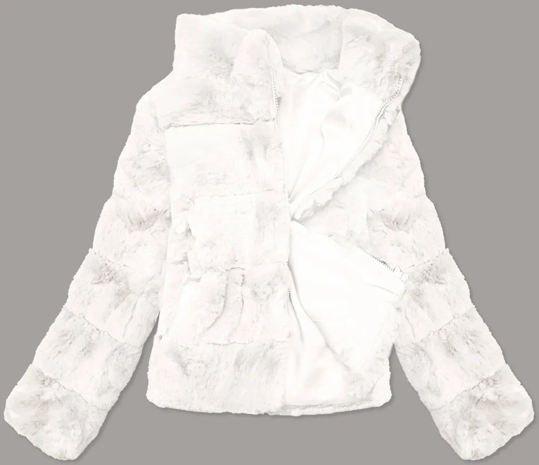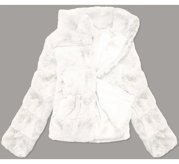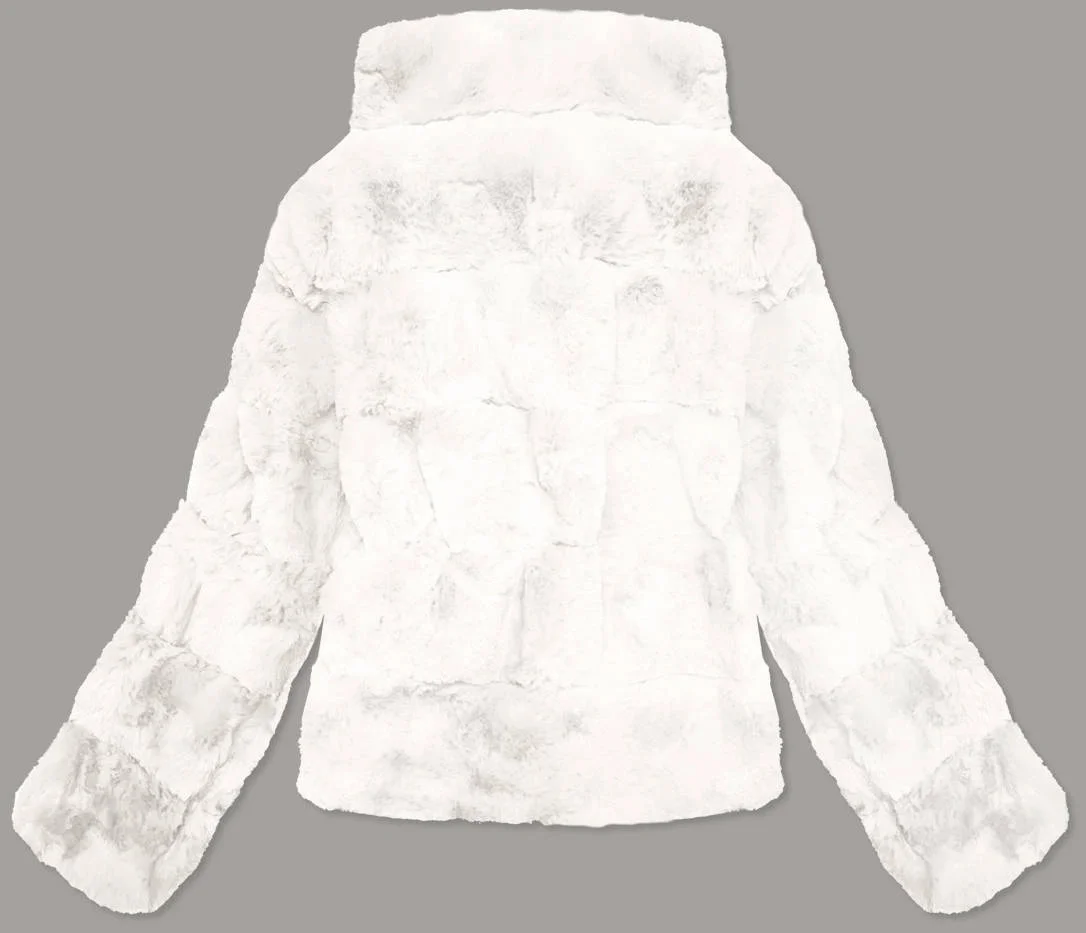 Krátká bílá dámská bunda - kožíšek se stojáčkem (BR9749-26)