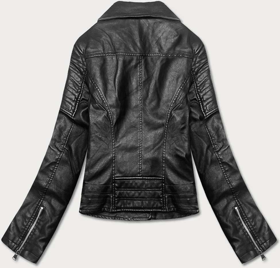 Krátká černá bunda ramoneska s límcem (11Z8031)
