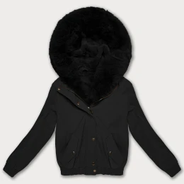 Krátká černá bunda s kožešinovou podšívkou S'West (B8506-1)