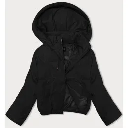 Krátká černá dámská bunda pro přechodné období s odepínací kapucí J Style (16M9088-392)