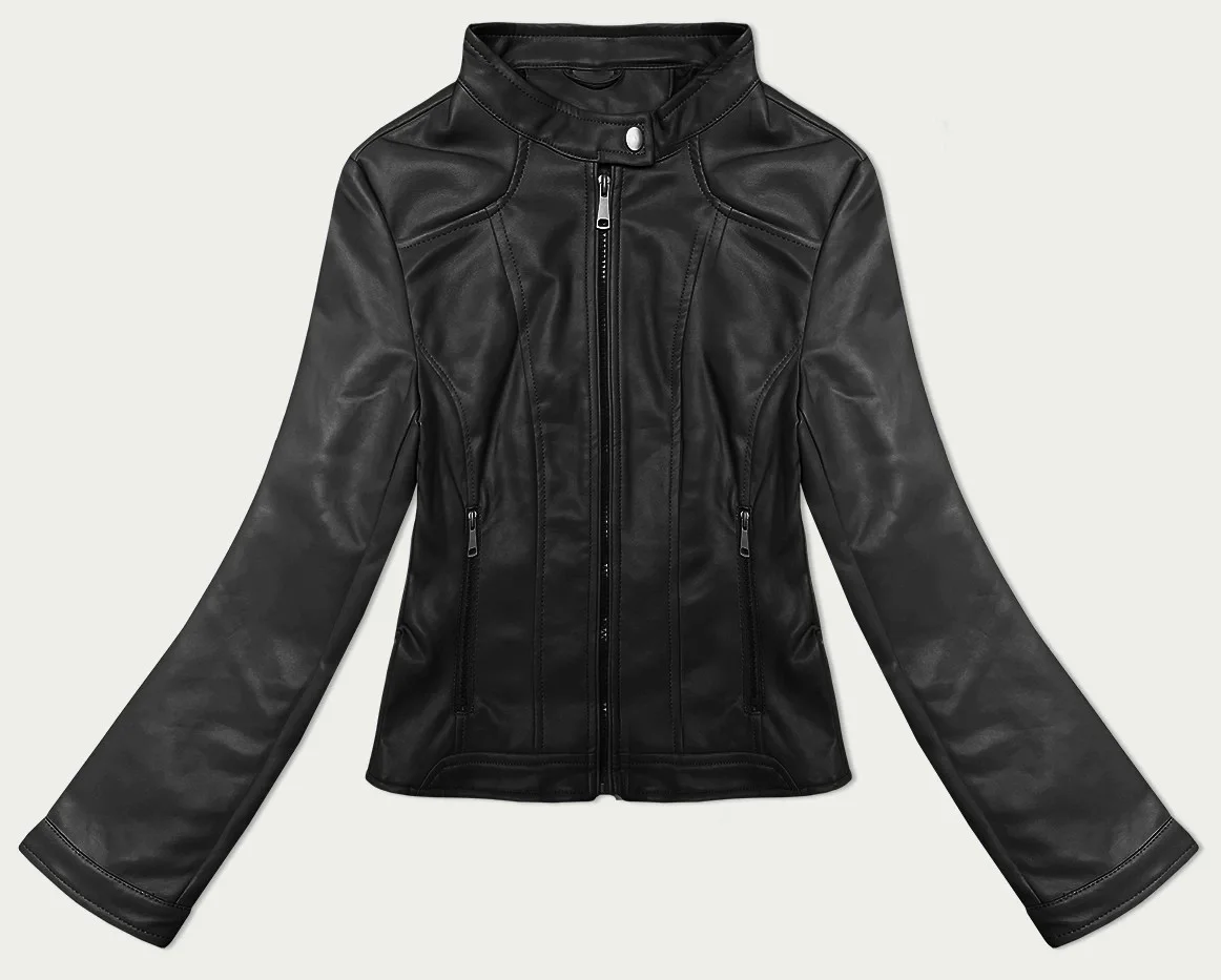 Přidání recenze k Krátká černá dámská bunda ramoneska se stojáčkem J Style (11Z8127)