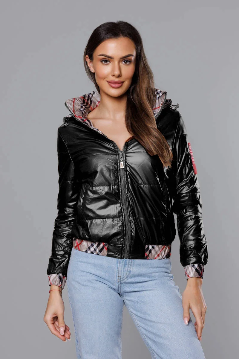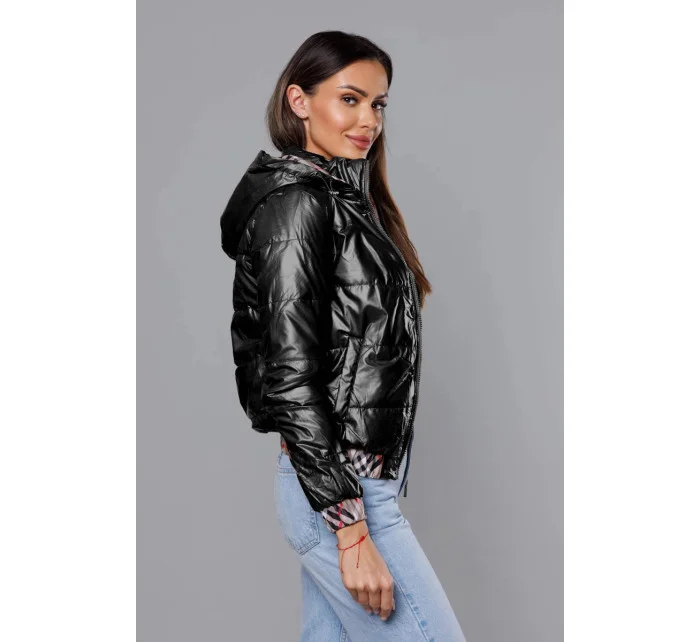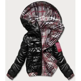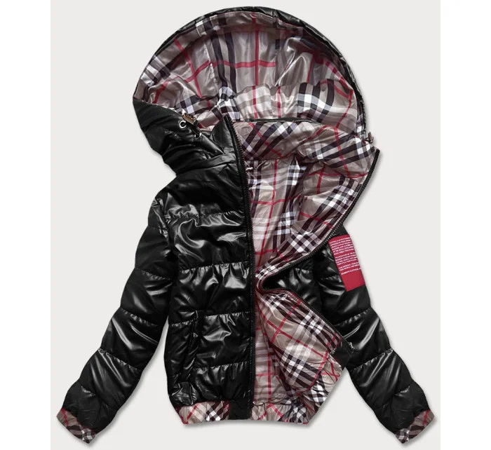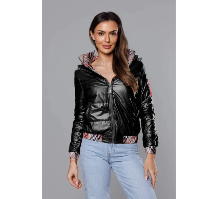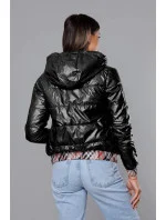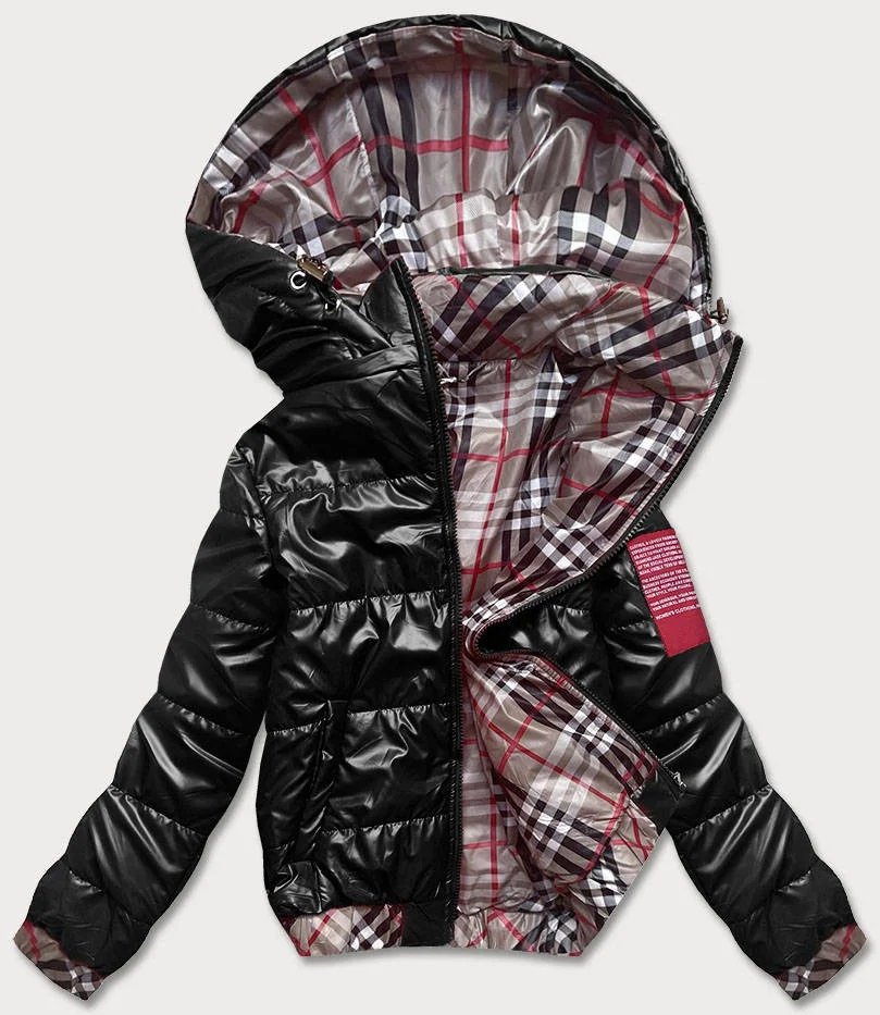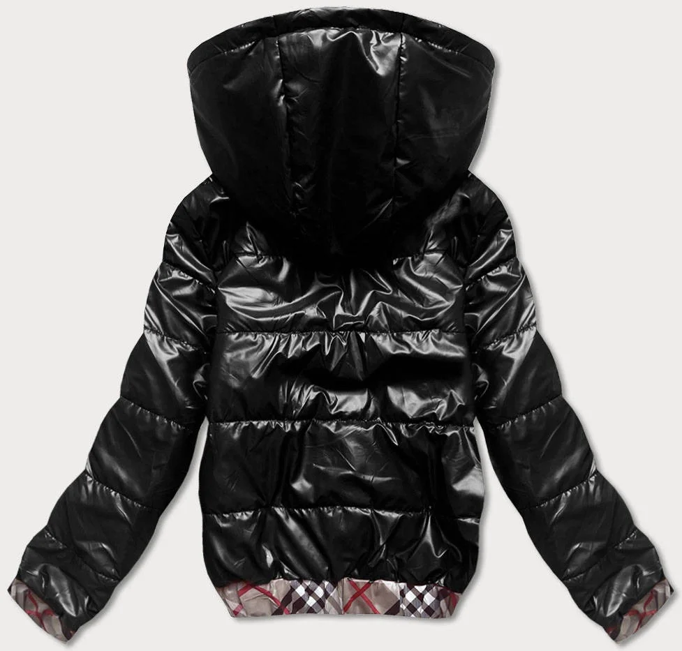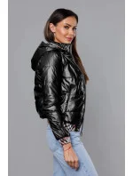 Krátká černá dámská bunda s ozdobným lemováním (B8030-1)