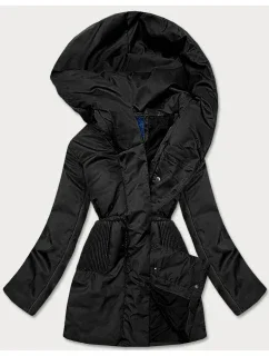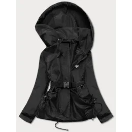Krátká černá dámská bunda s páskem (AG3-03)