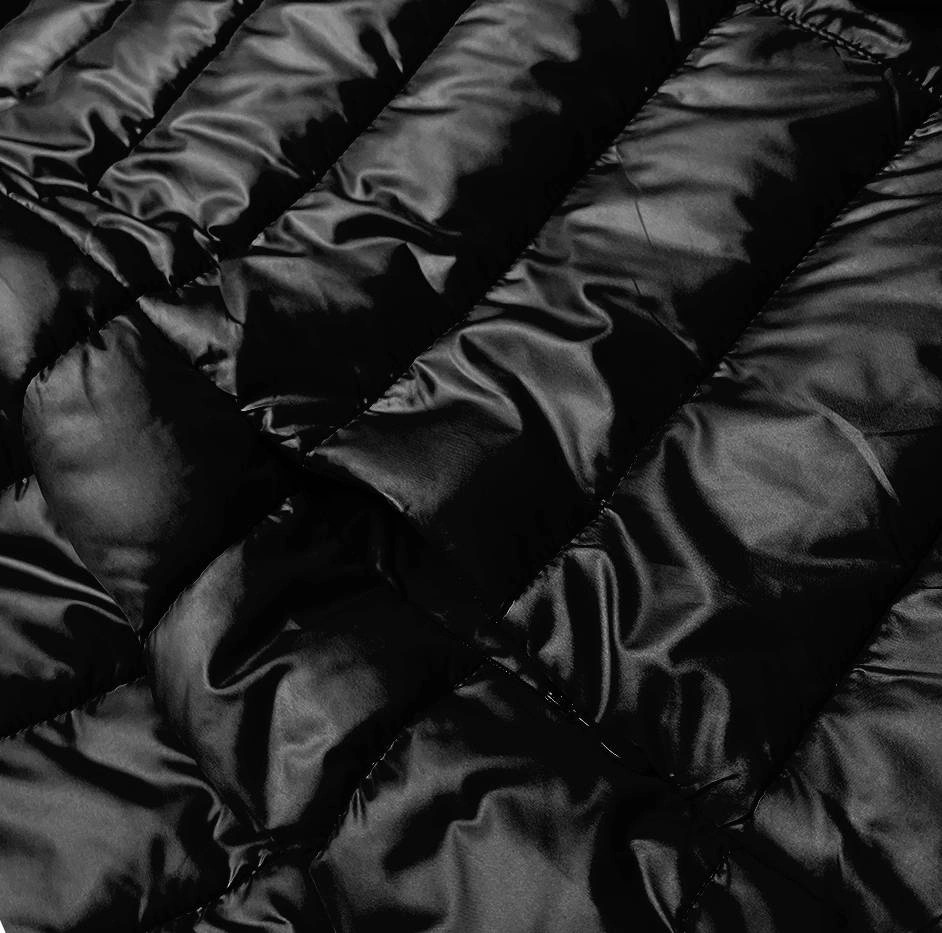 Bunda je prošívaná, je zateplená syntetickou péřovou výplní, má dvě kapsy a zapíná se zipem. Model má stojáček a kapuci, kterou je možné odepnout. Rukávy jsou olemované dlouhými stahovacími lemy. Přední část modelu je o něco kratší než zadní část. Bunda má délku k bokům.