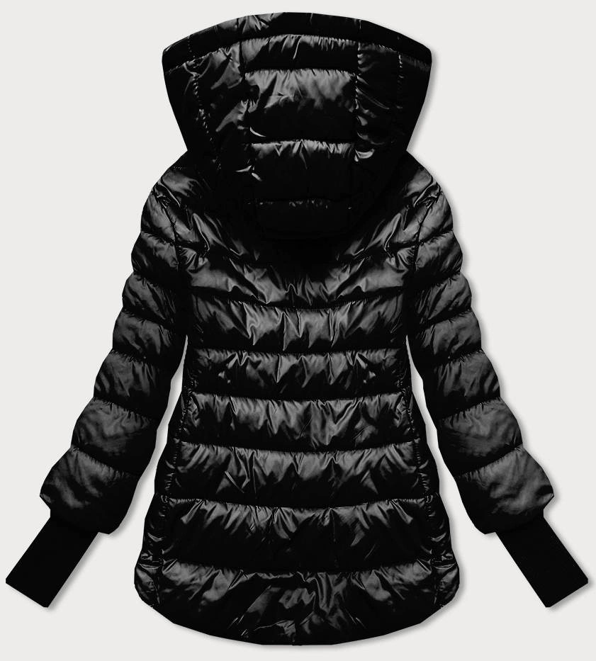 Krátká černá dámská bunda s úpletovými stahovacími lemy (P22-6636-1)