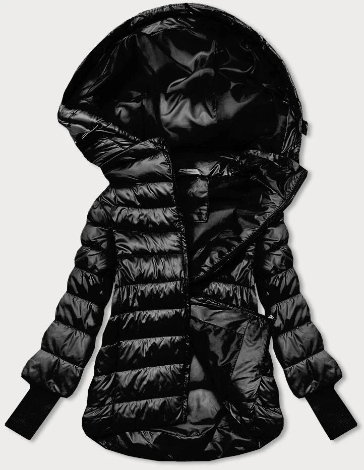 Přidání recenze k Krátká černá dámská bunda s úpletovými stahovacími lemy (P22-6636-1)