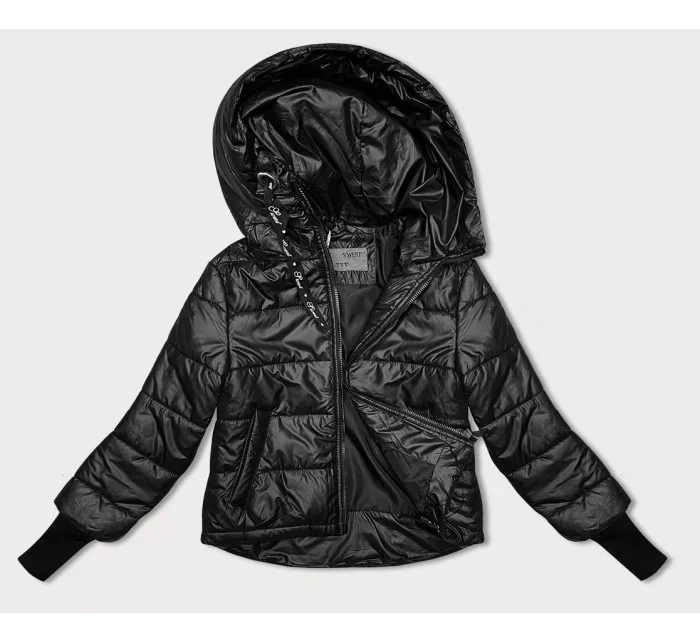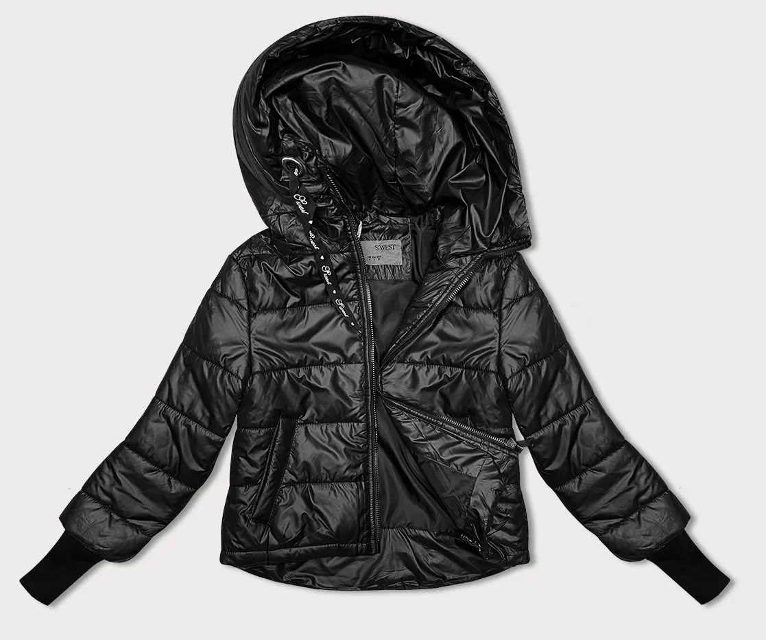 Krátká černá dámská bunda S'West s látkovými stahovacími lemy (B8189-1)