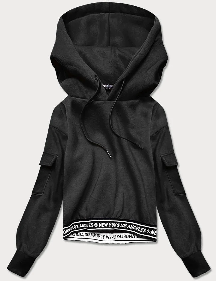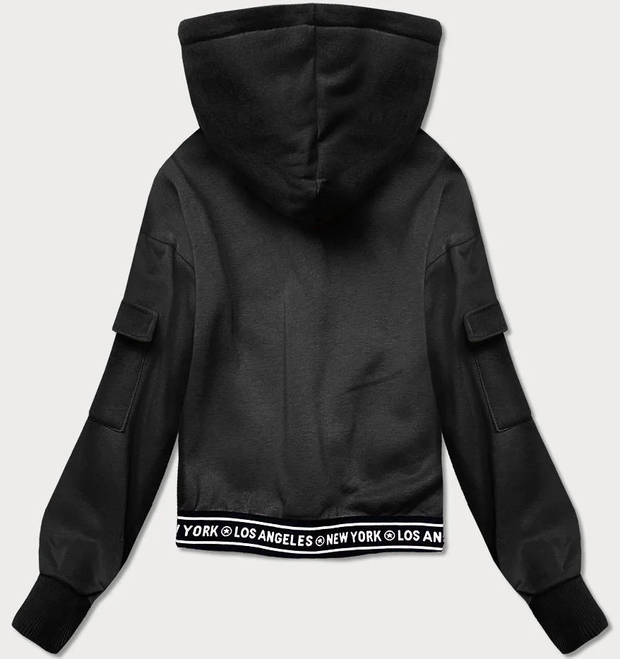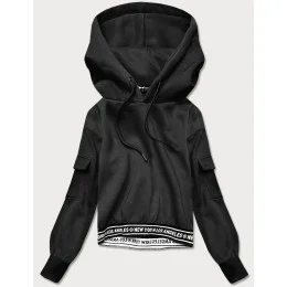 Přidání recenze k Krátká černá dámská tepláková mikina se stahovacími lemy (26030)
