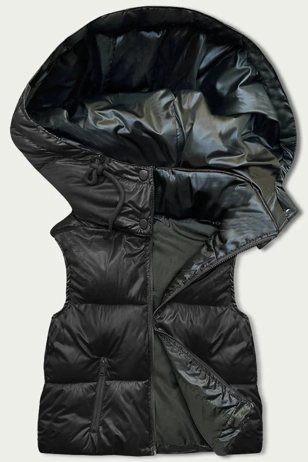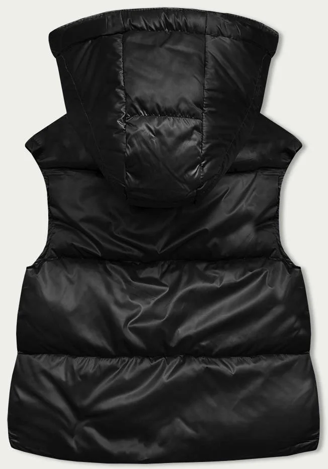 Krátká černá dámská vesta s kapucí (B8156-1)