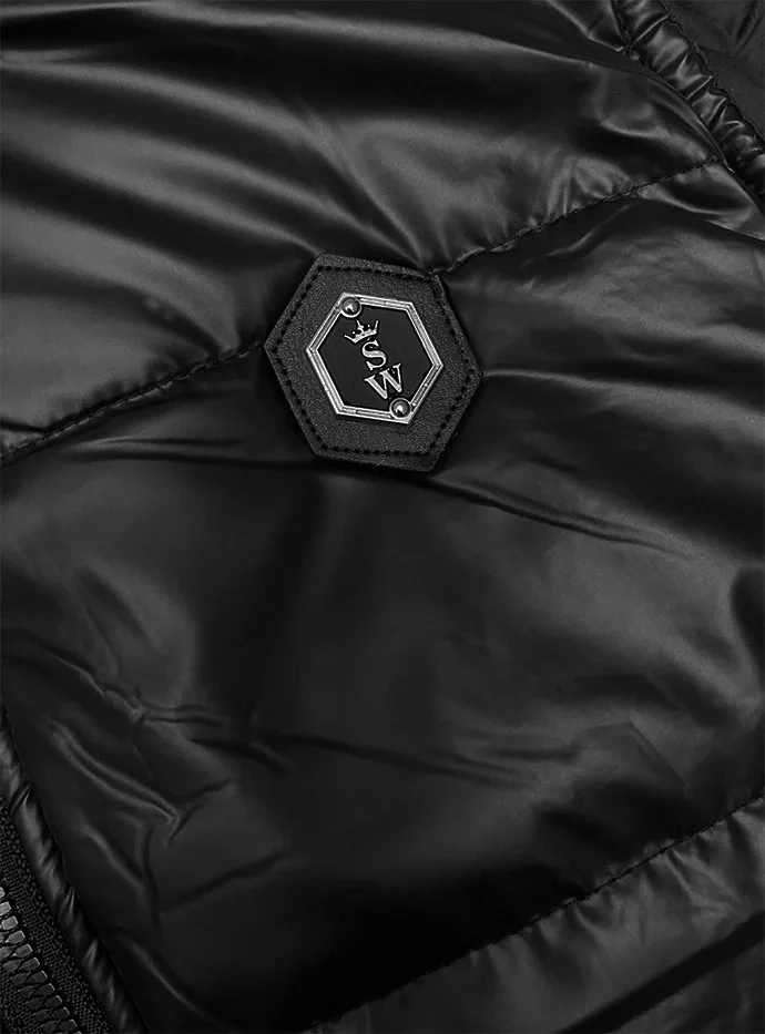Vesta je lehce zateplená syntetickou péřovou výplní, má kulatý výstřih a zapíná se zipem. Pod poprsím jsou stahovací gumy. Model má délku do pasu.
