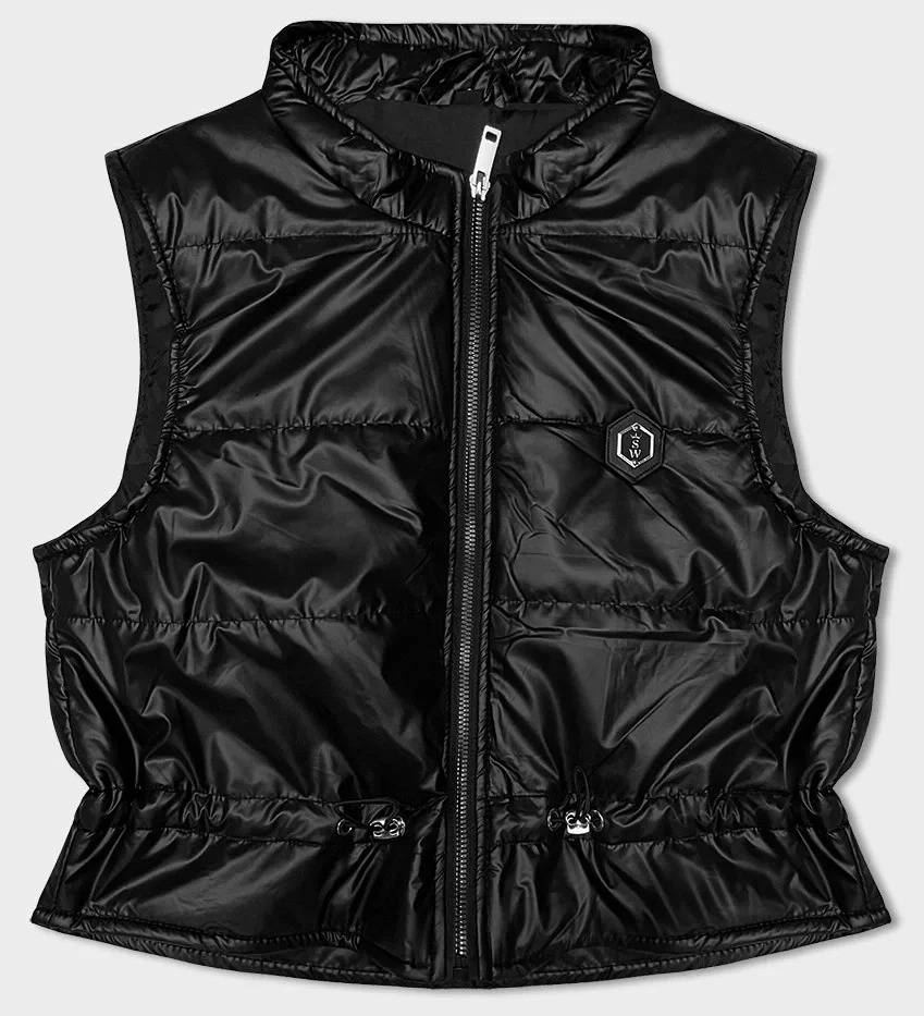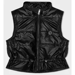 Krátká černá dámská vesta s kulatým výstřihem S'West (B8178-1)