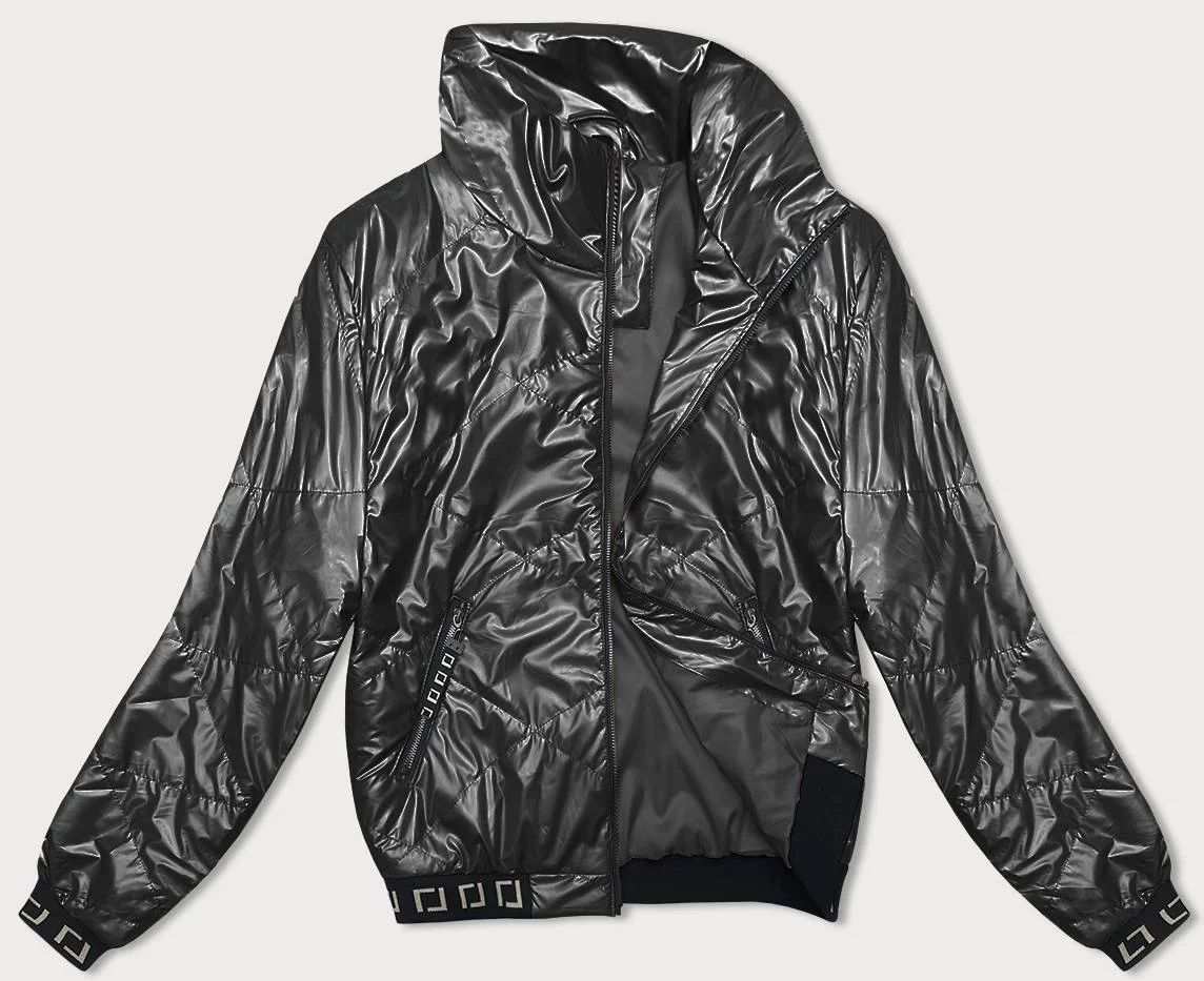 Krátká černá lesklá dámská bunda se stojáčkem model 18848652 - J.STYLE