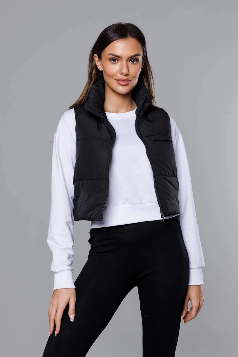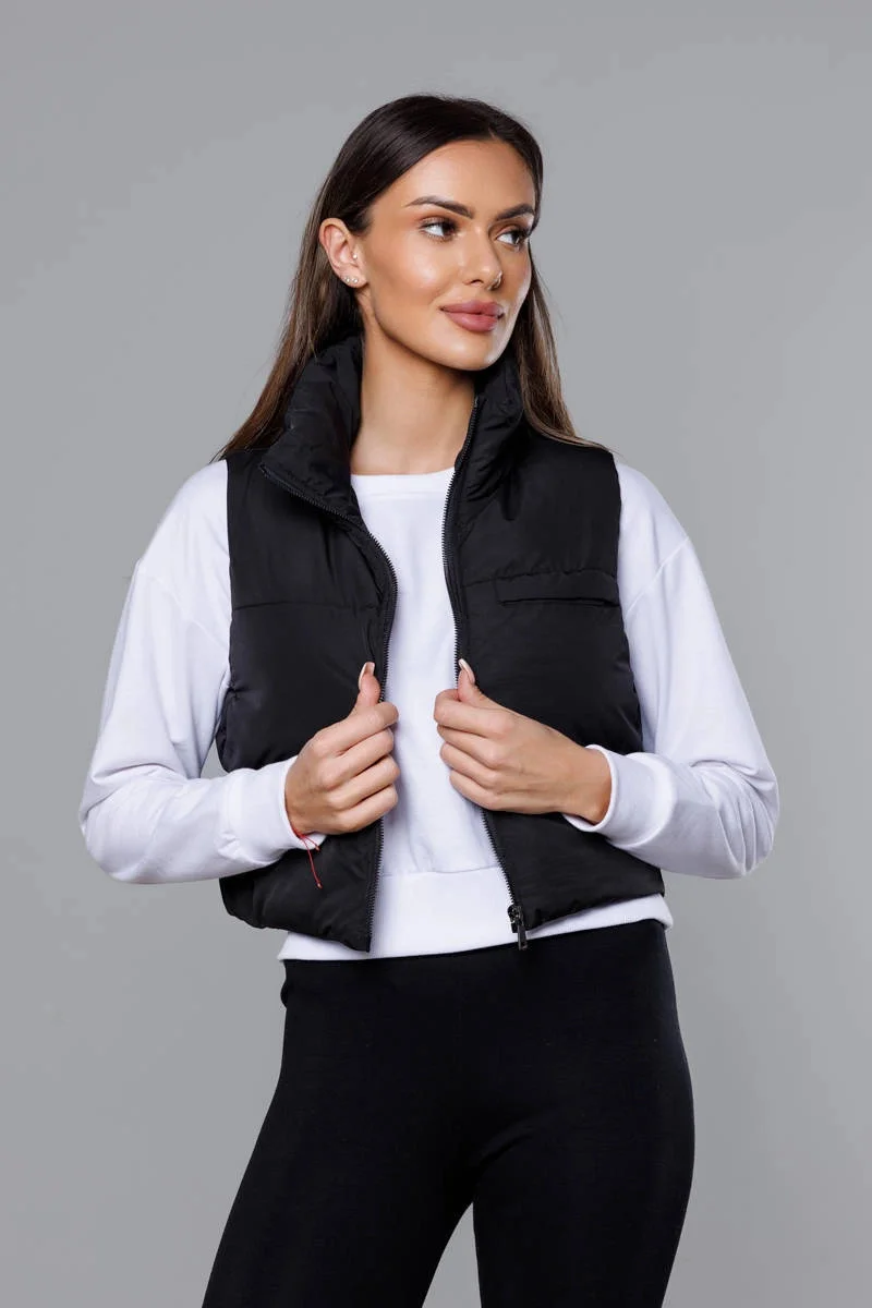 Krátká černá vesta se stojáčkem model 18266810 - J.STYLE