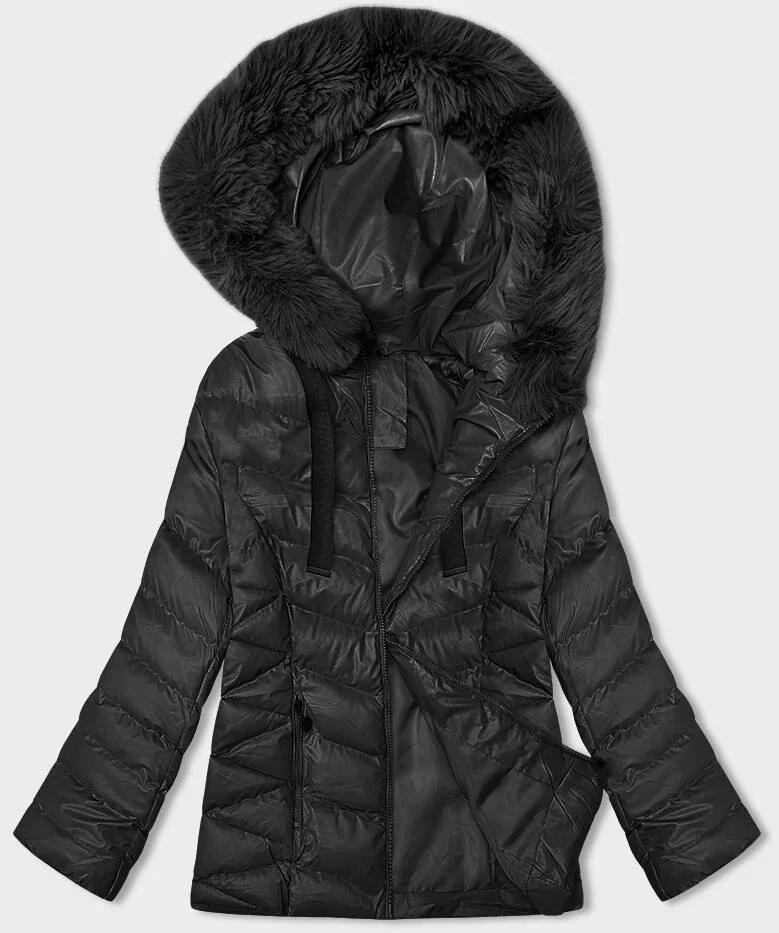 Krátká černá zimní bunda s kapucí model 21246217 - J.STYLE