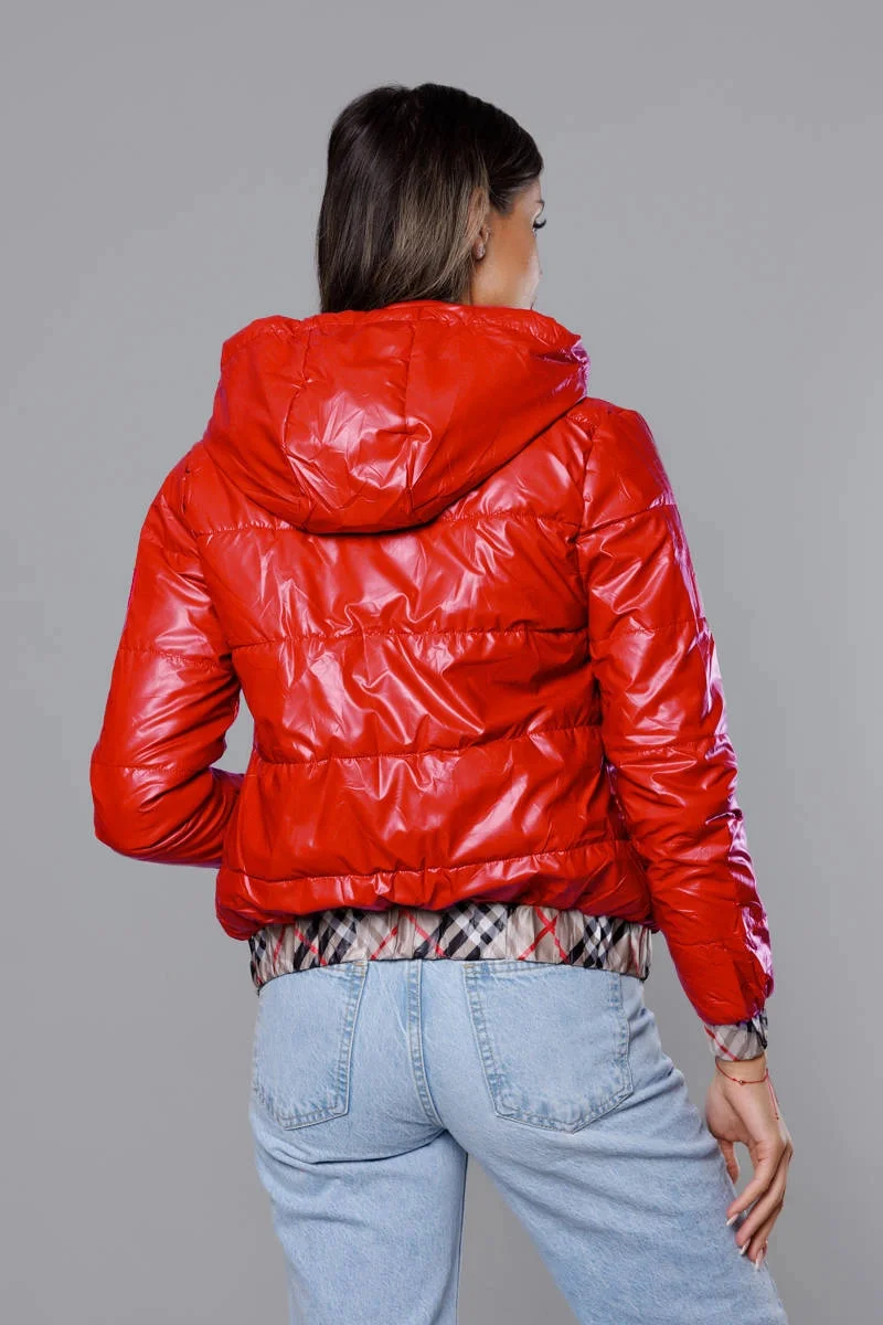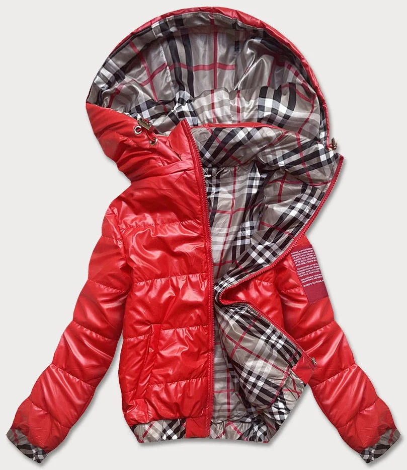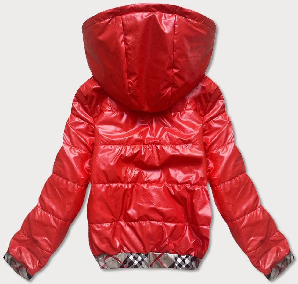 Krátká červená dámská bunda s ozdobným lemováním (B8030-4)