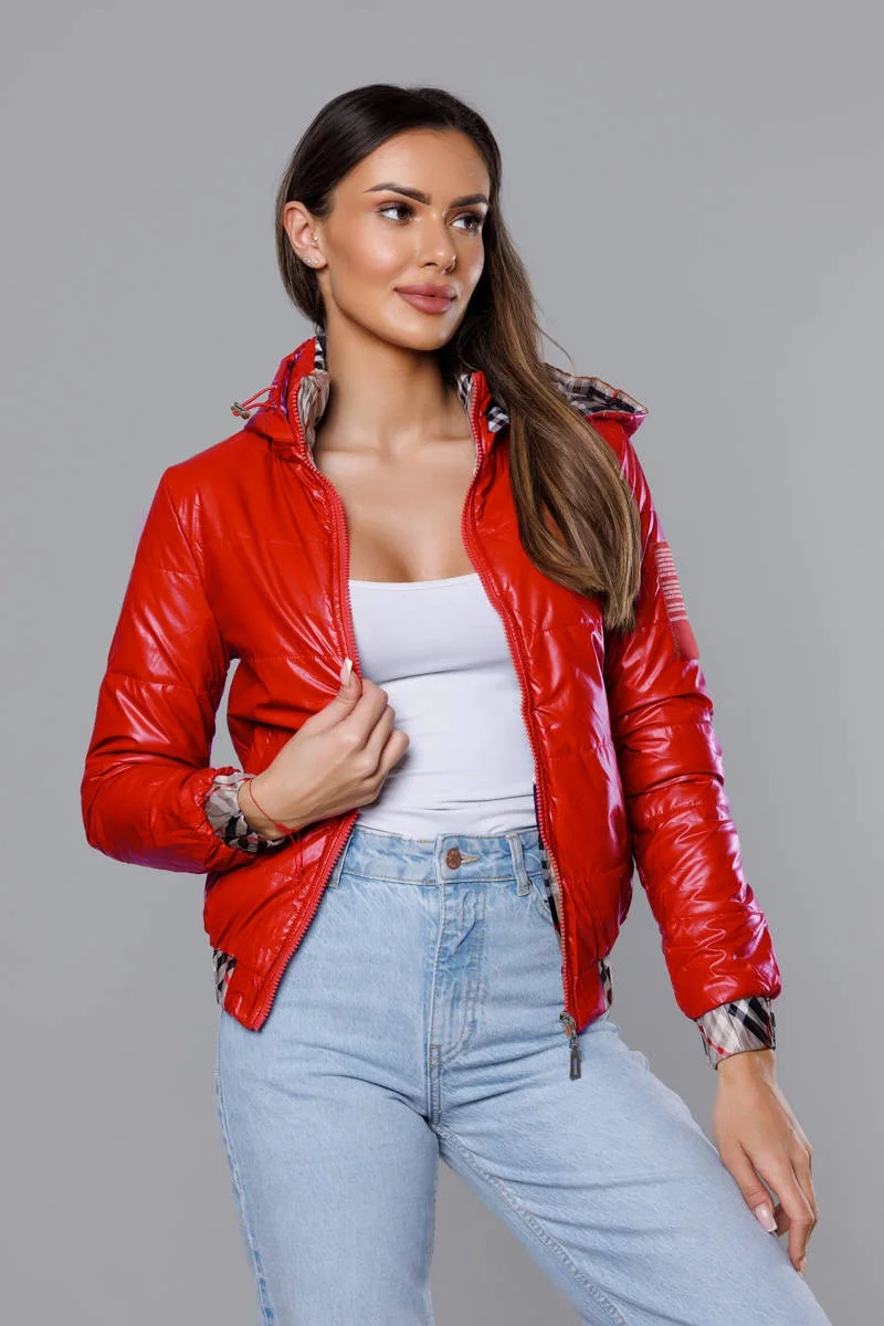 Přidání recenze k Krátká červená dámská bunda s ozdobným lemováním (B8030-4)