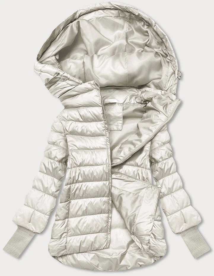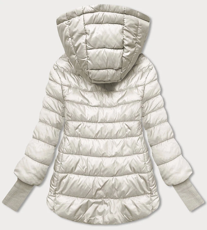 Krátká dámská bunda v barvě ecru s úpletovými stahovacími lemy (P22/P3-6636-12)