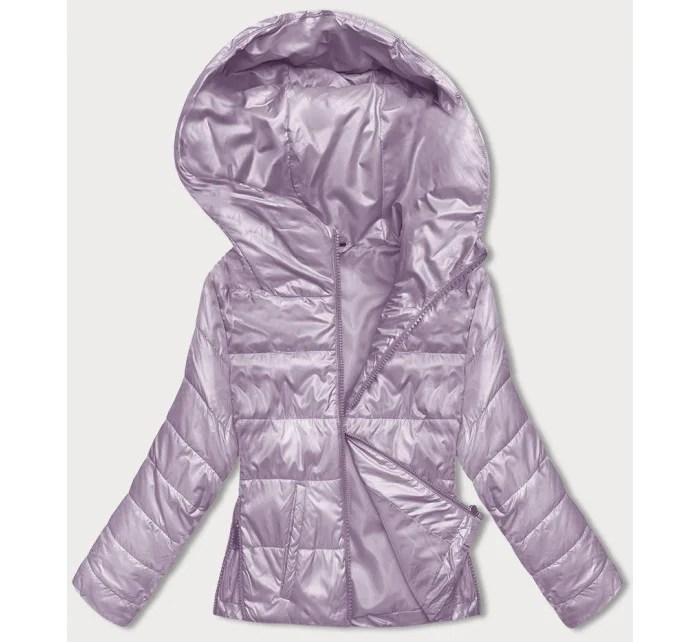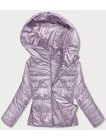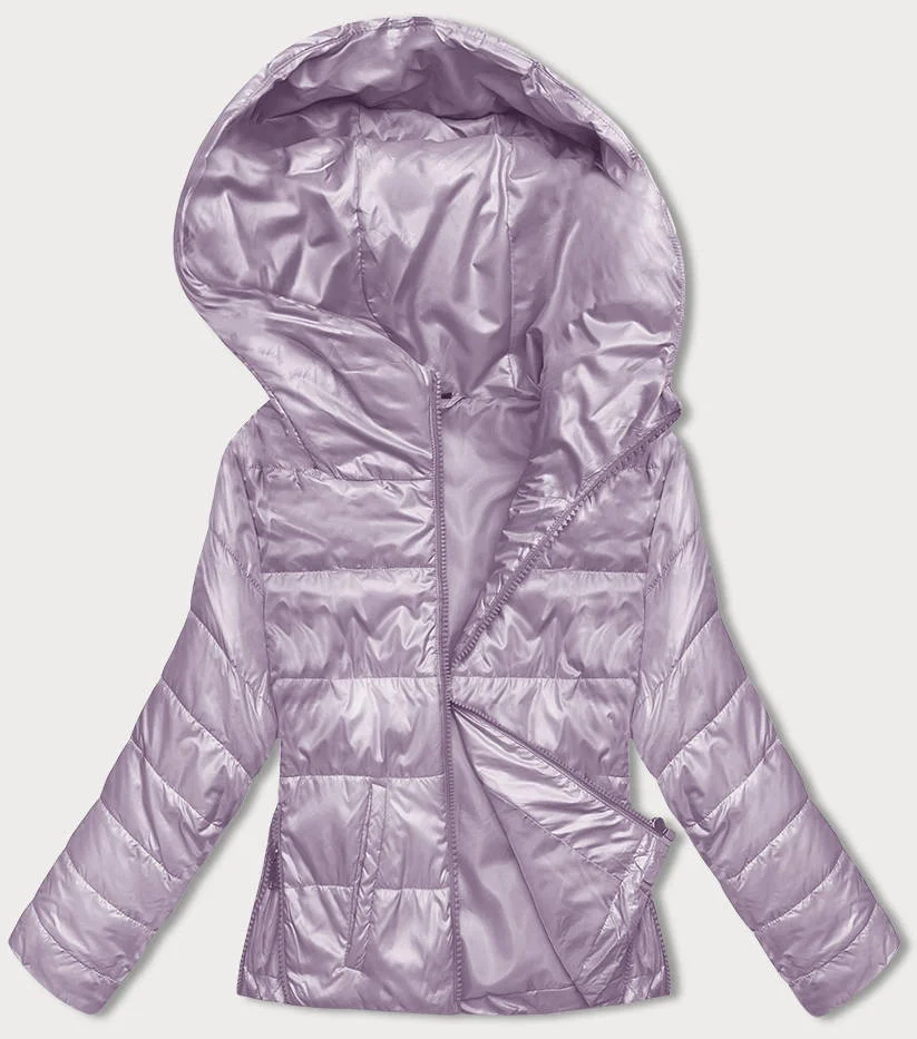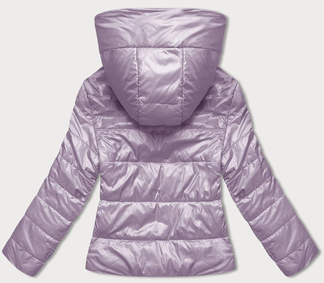 Krátká dámská bunda ve vřesové barvě s kapucí (B8187-51)